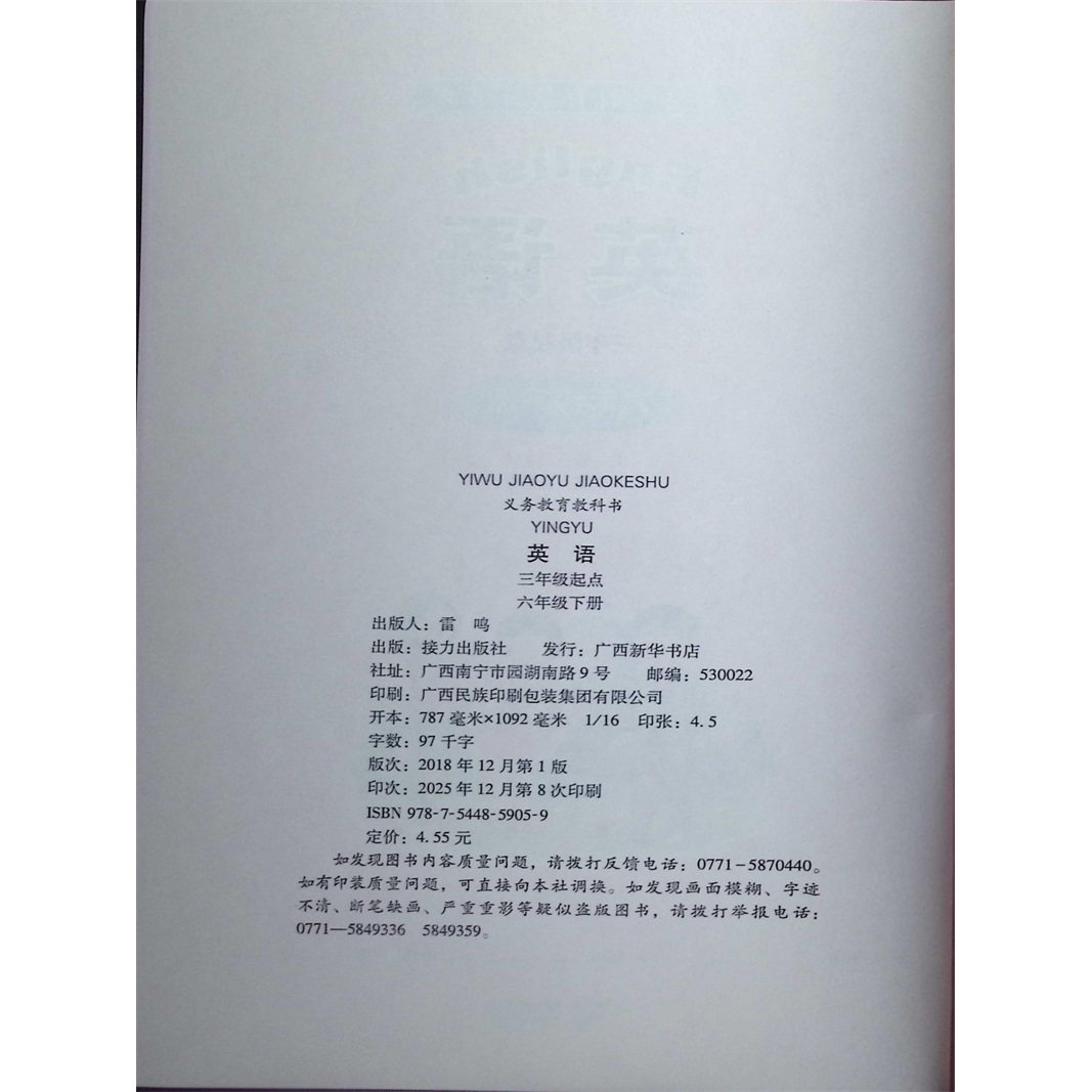 📚 正版2026春义务教育教科书课本英语六年级下册接力版广西来宾梧贺州6
