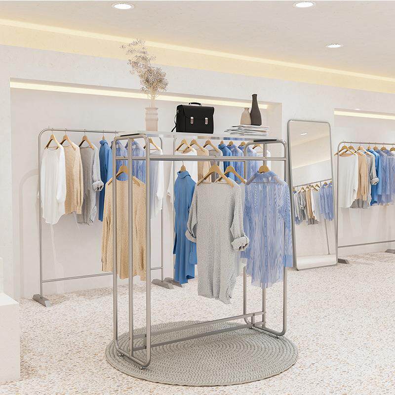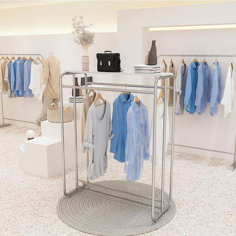 📚 无品牌/不绣钢拉银色挂衣架服装店示架中岛落地式丝陈物列架置架