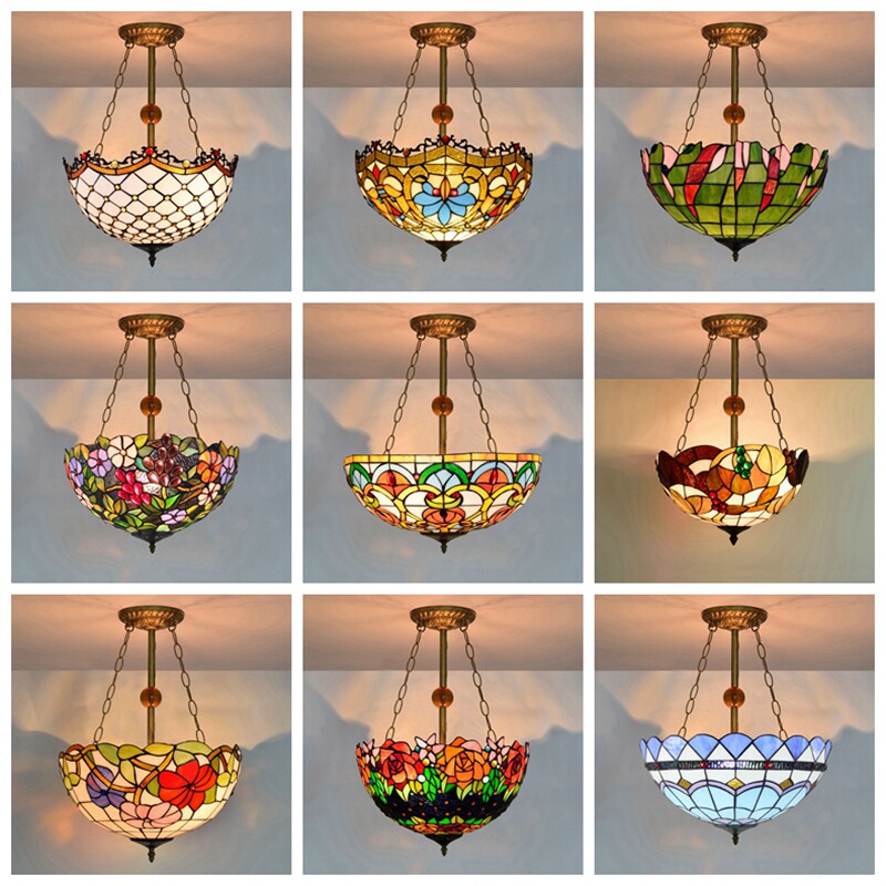 📚 欧琈蒂凡尼彩色玻璃法式复古餐厅吊灯地中海酒吧门厅美式欧式灯具