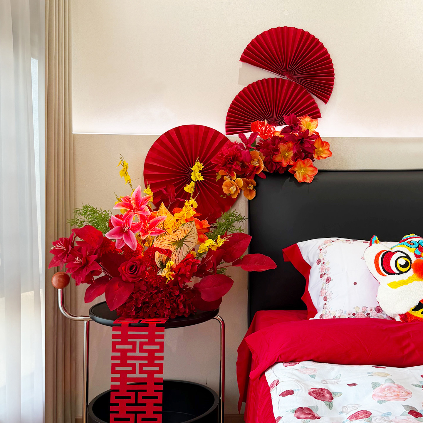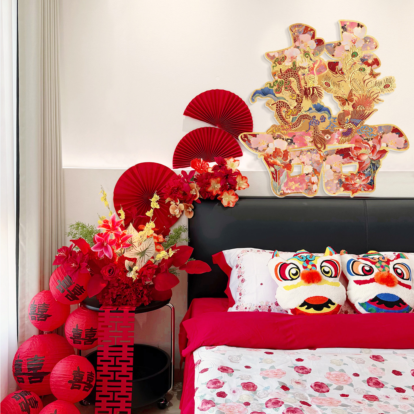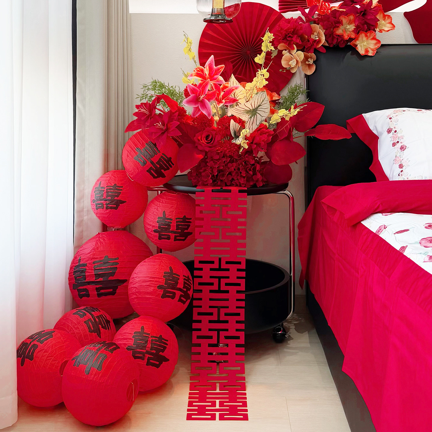 📚 婚房布置新房卧室床头仿真花红色喜字结婚浪漫装饰囍灯笼婚庆套装