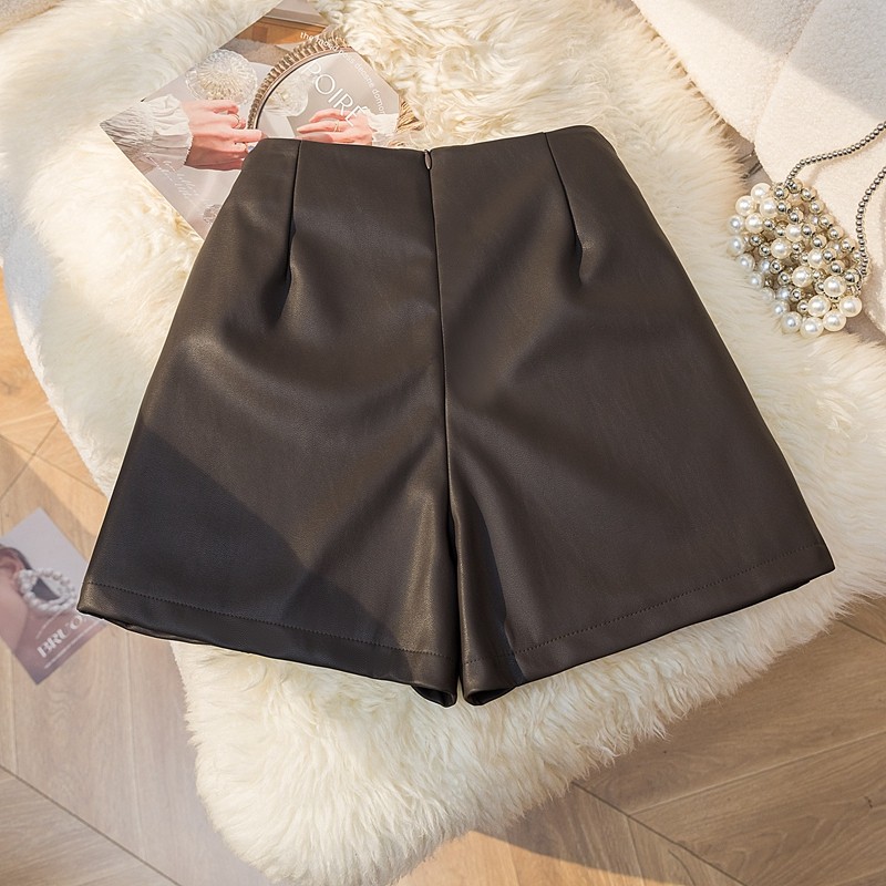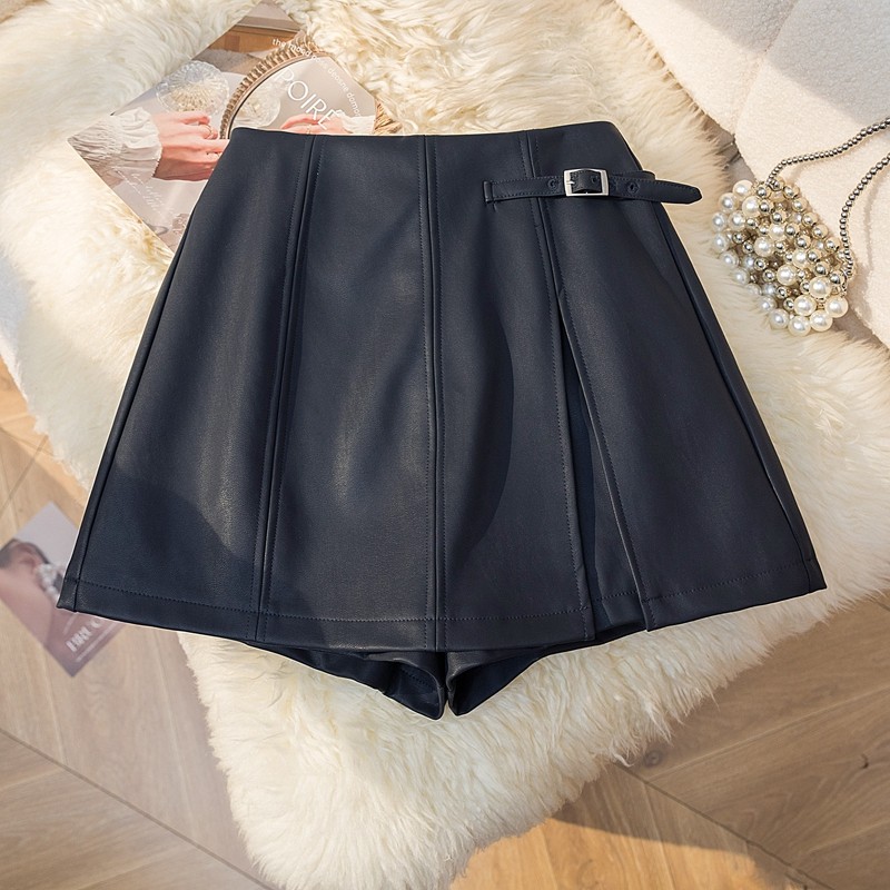 📚 美式复古PU皮半身裙女2025秋冬侧开叉高腰a字裙显瘦百搭短裙裤子