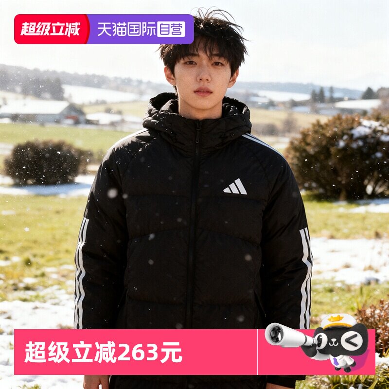 📚 【自营】Adidas阿迪达斯羽绒服男装长款运动服保暖黑色外套JG3840