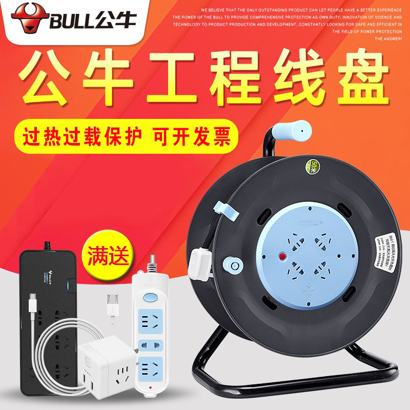 📚 公牛线盘移动式地拖线盘空盘卷线盘长电源无线30米50米收线盘插座