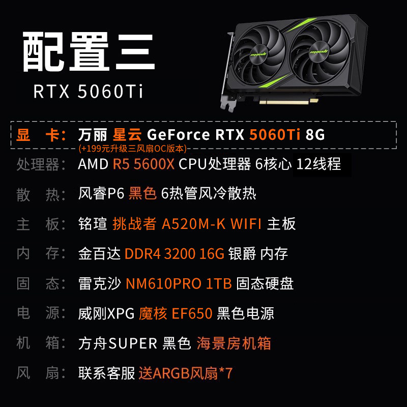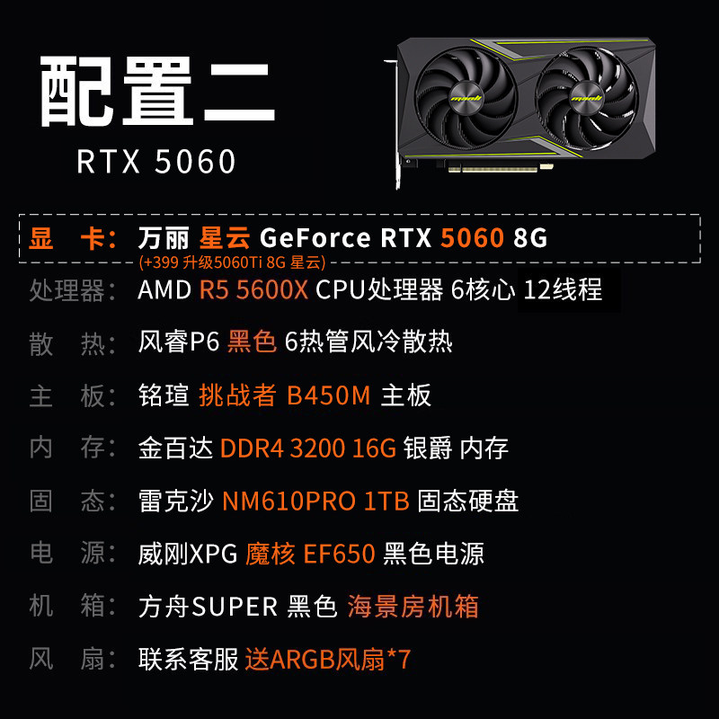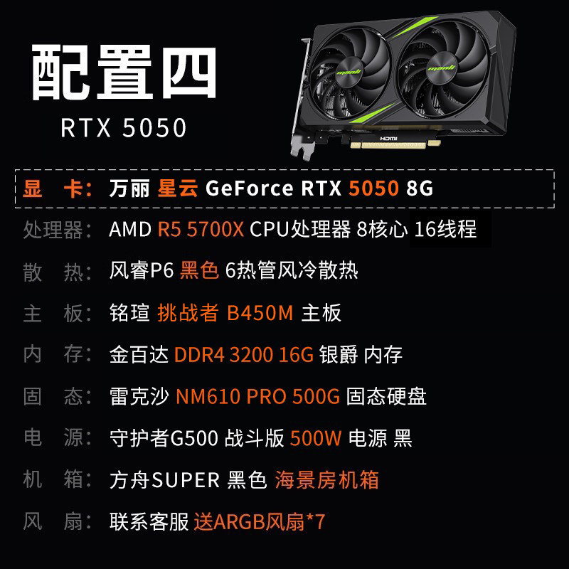 📚 万丽显卡主机 AMD锐龙R5 5600X/5700X+5050/5060 星云组装电脑台式主机DIY整机渲染AI游戏台式机三角洲黑神话