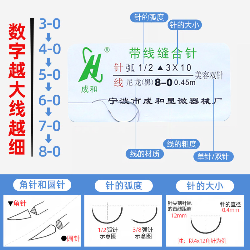 📚 成和带针缝合线双眼皮美容整形外科不可吸收埋线缝合针医用无痕