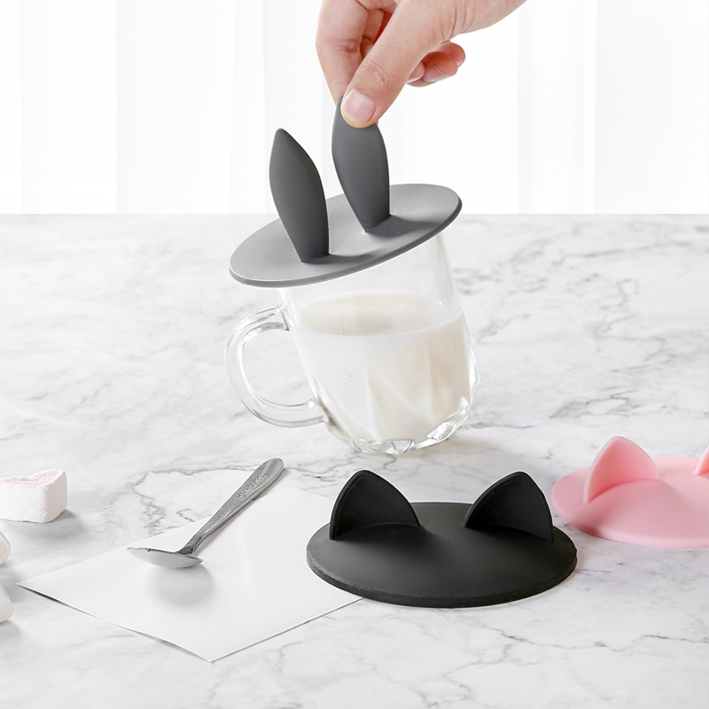 📚 杯盖硅胶马克杯子配件可爱耳朵圆形防尘通用创意陶瓷玻璃水杯盖子