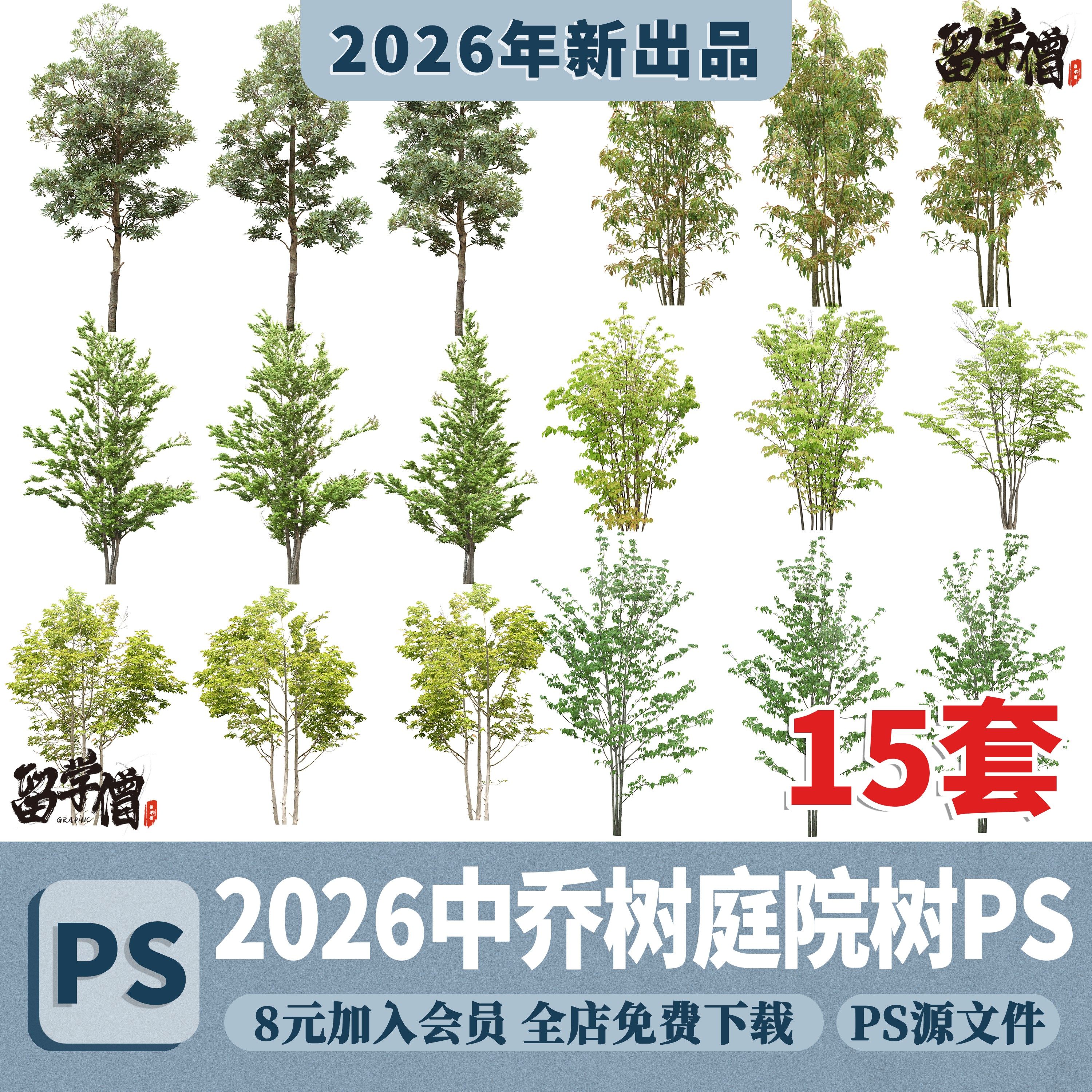 📚 园林景观常绿小乔木中乔庭院树丛生植物效果图后期PSD免抠ps素材