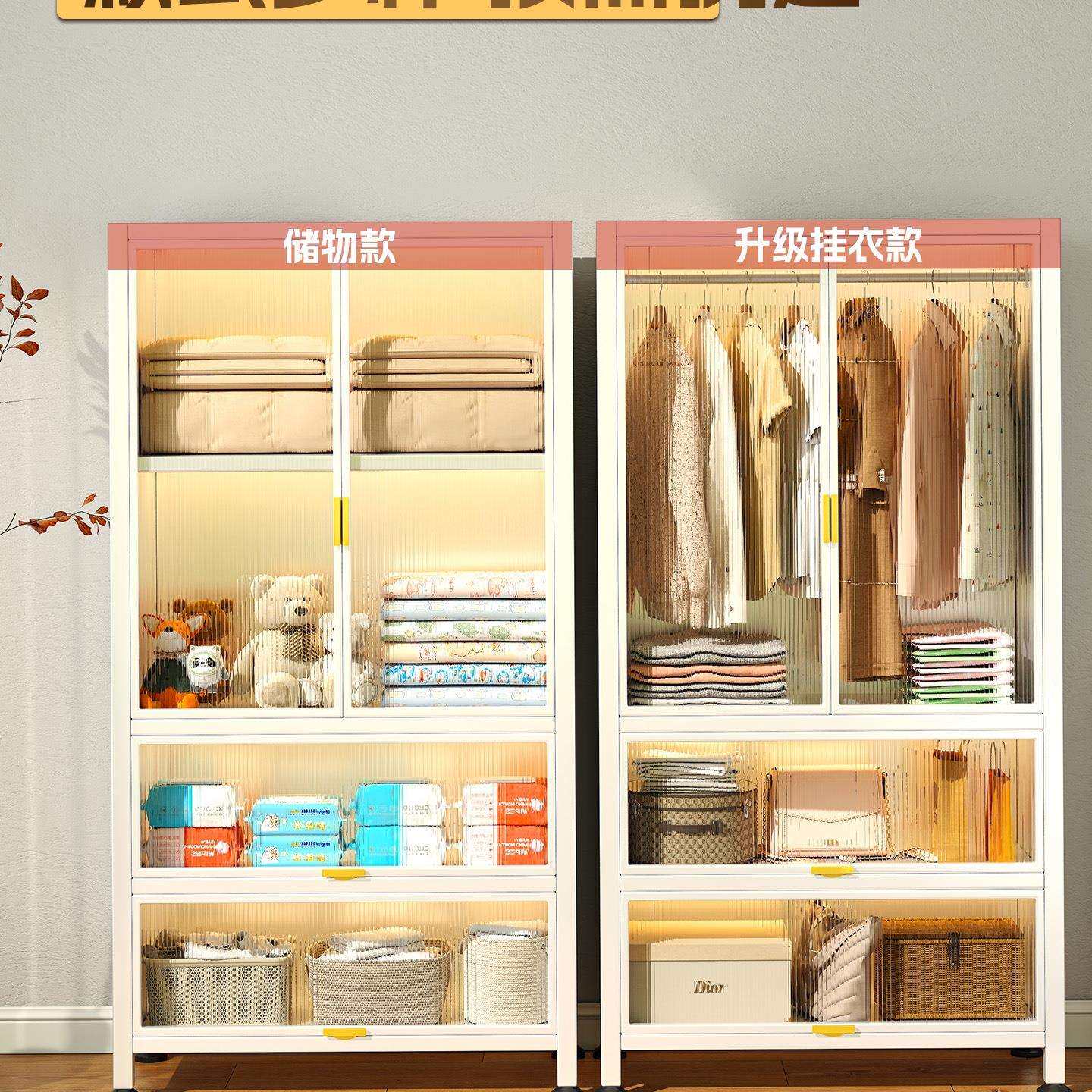 📚 钢制家用阳台柜杂物收纳储物柜卧室靠墙一体衣柜多层防尘防晒柜子