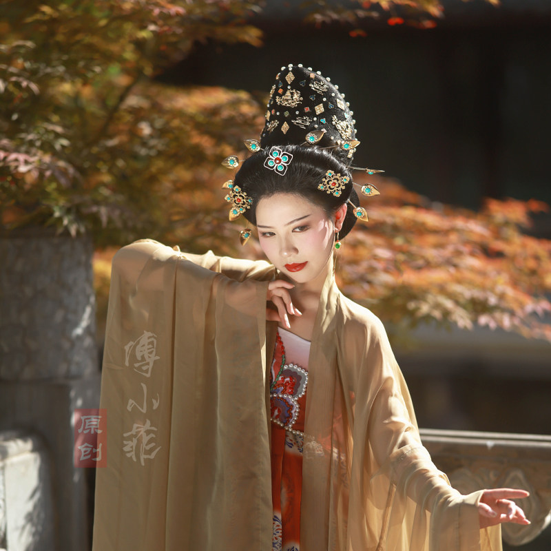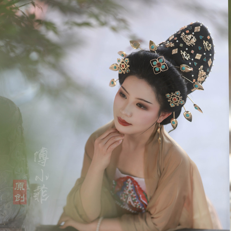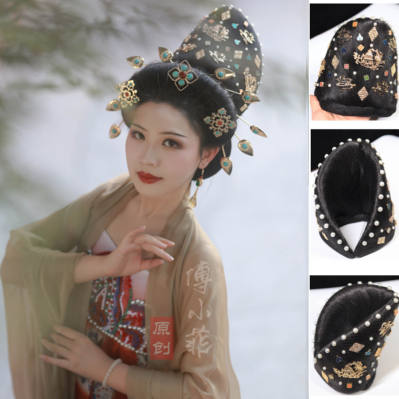 📚 傅小菲 大刀髻花钿珍珠成品懒人复原唐风华丽供养人发髻
