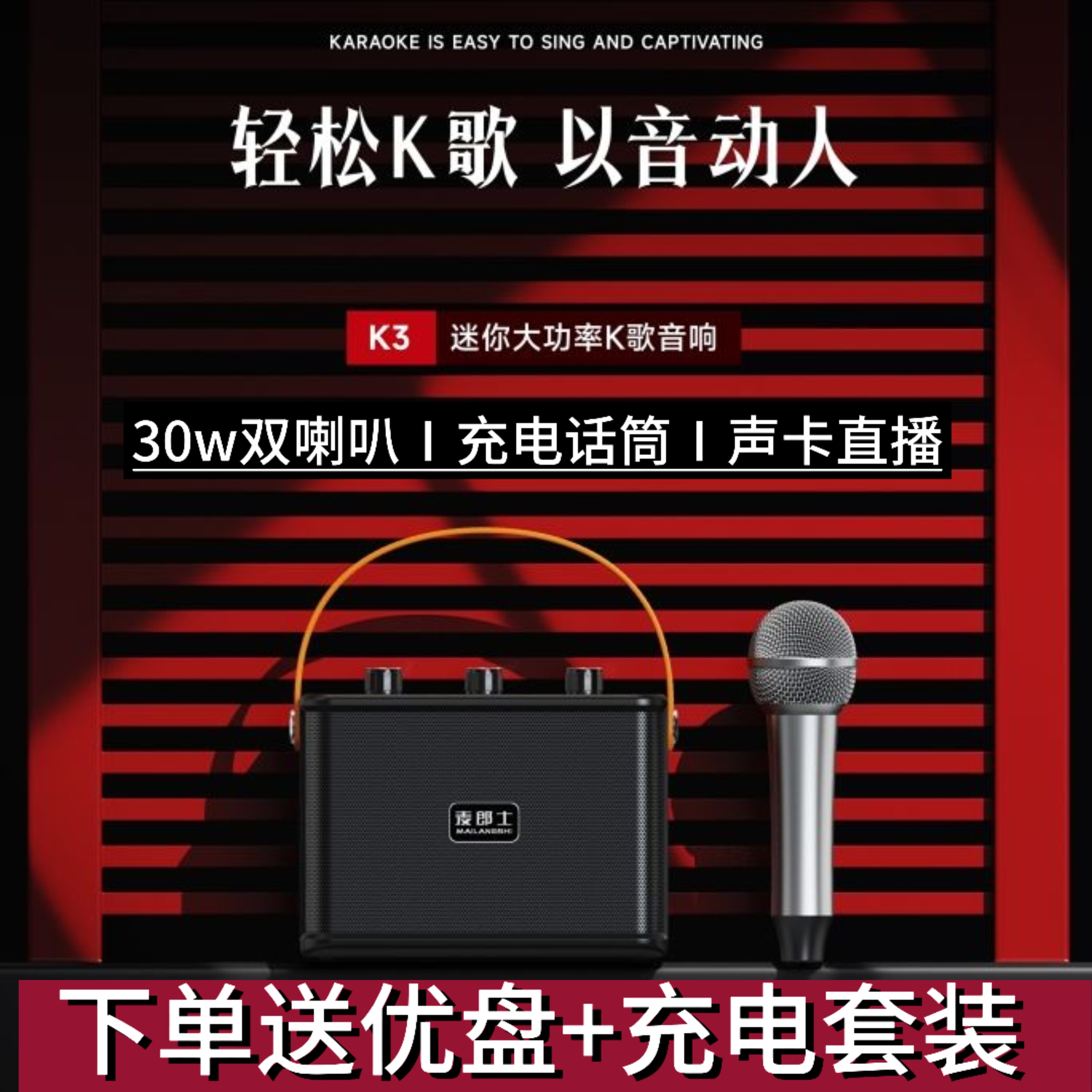 📚 麦郎士k3便携式k歌音响太极拳广场舞教学扩音0.9公斤轻便小巧30W