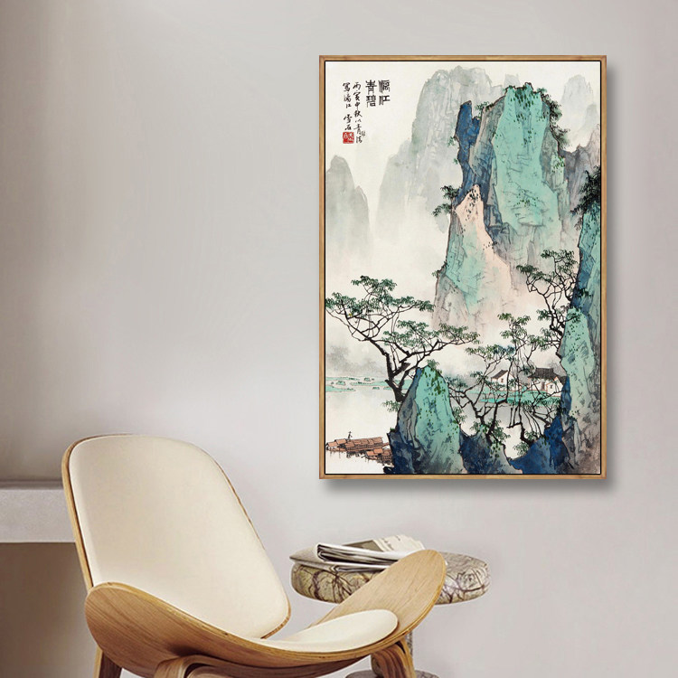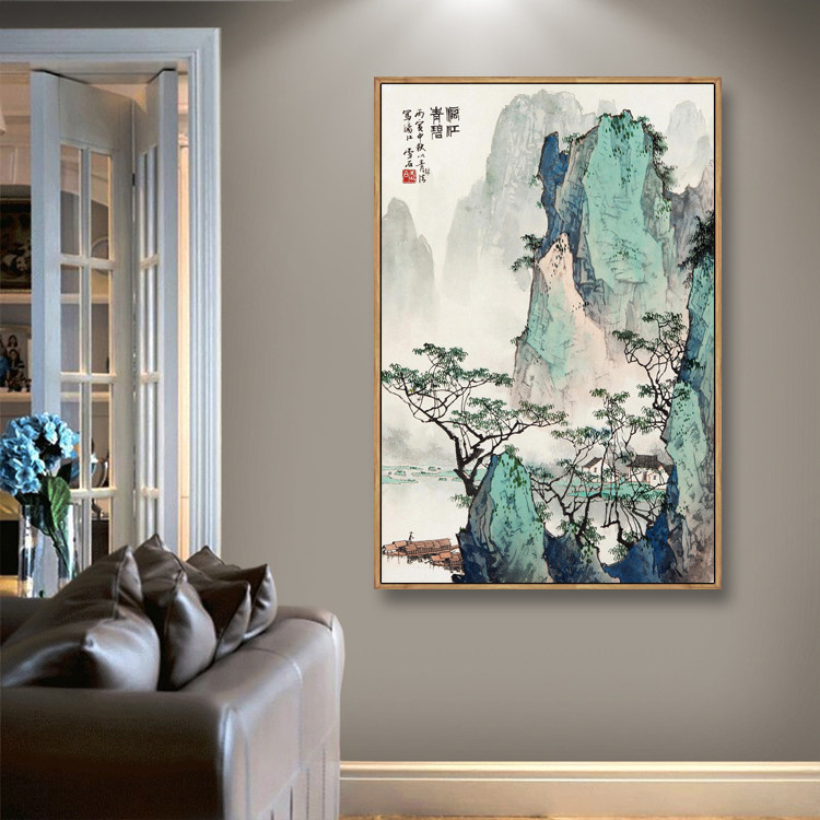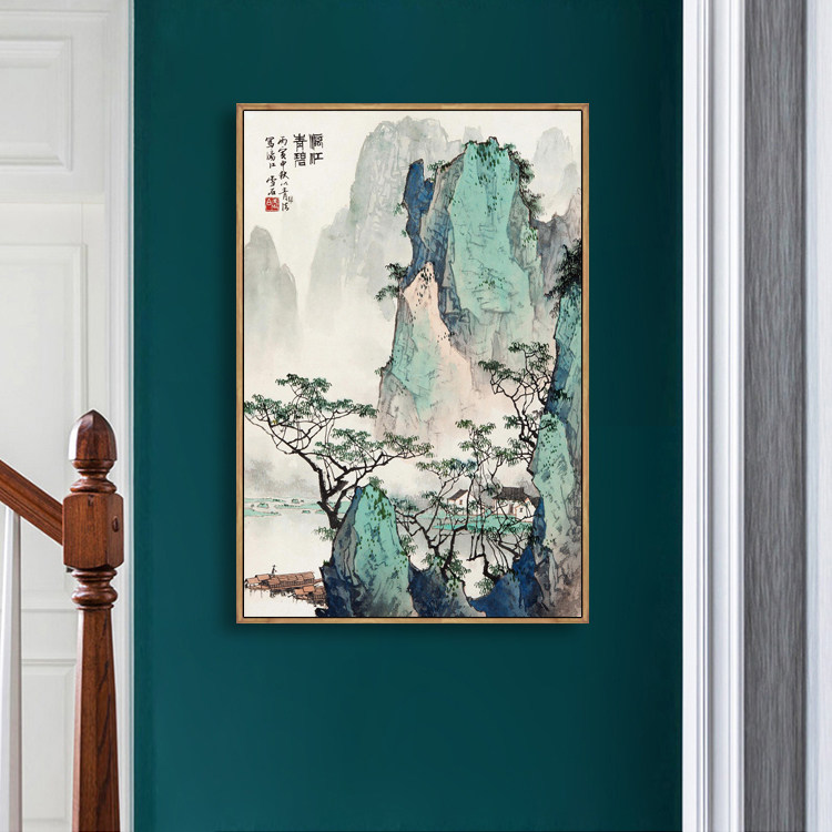 📚 白雪石漓江青碧山水画新中式客厅装饰画卧室床头玄关壁画餐厅挂画