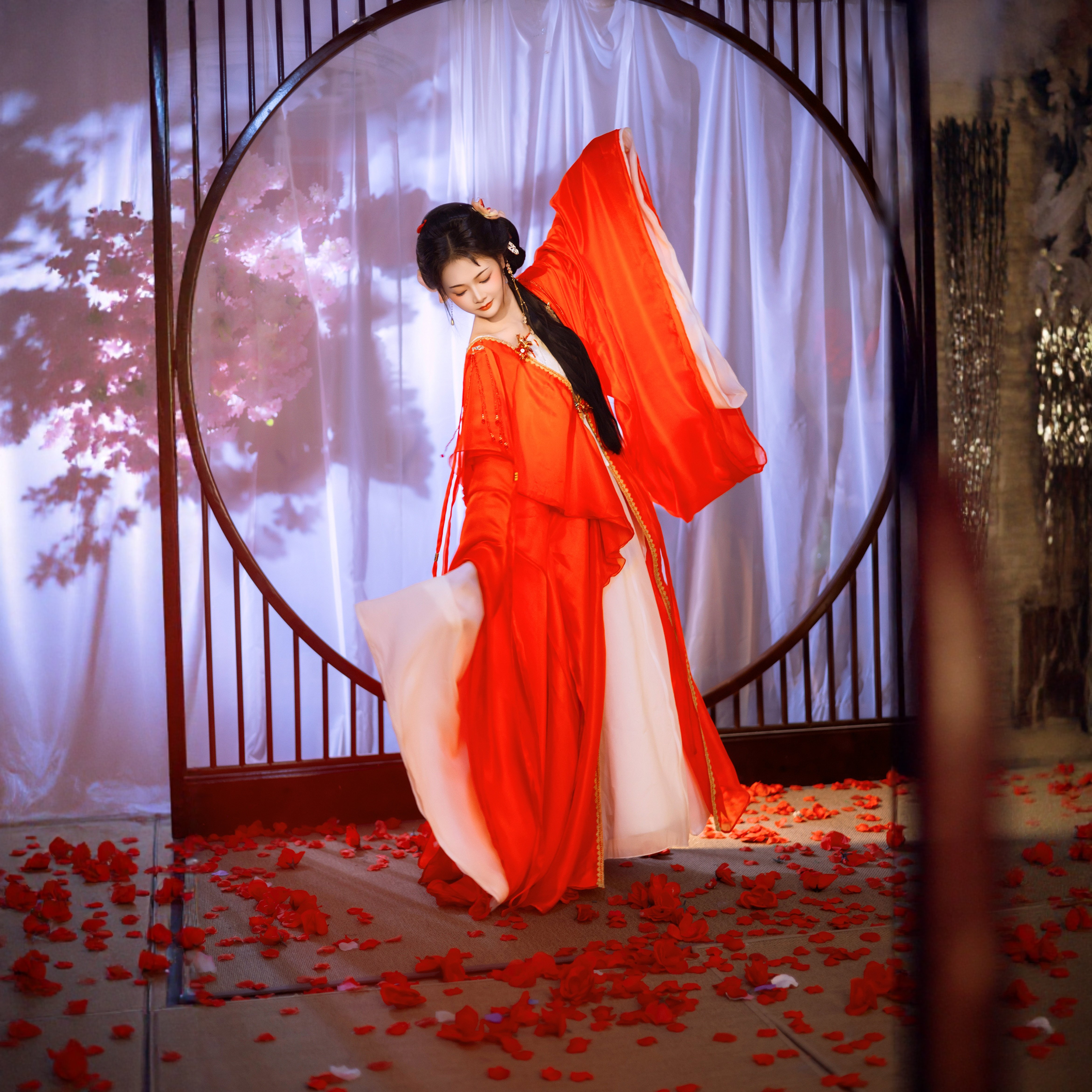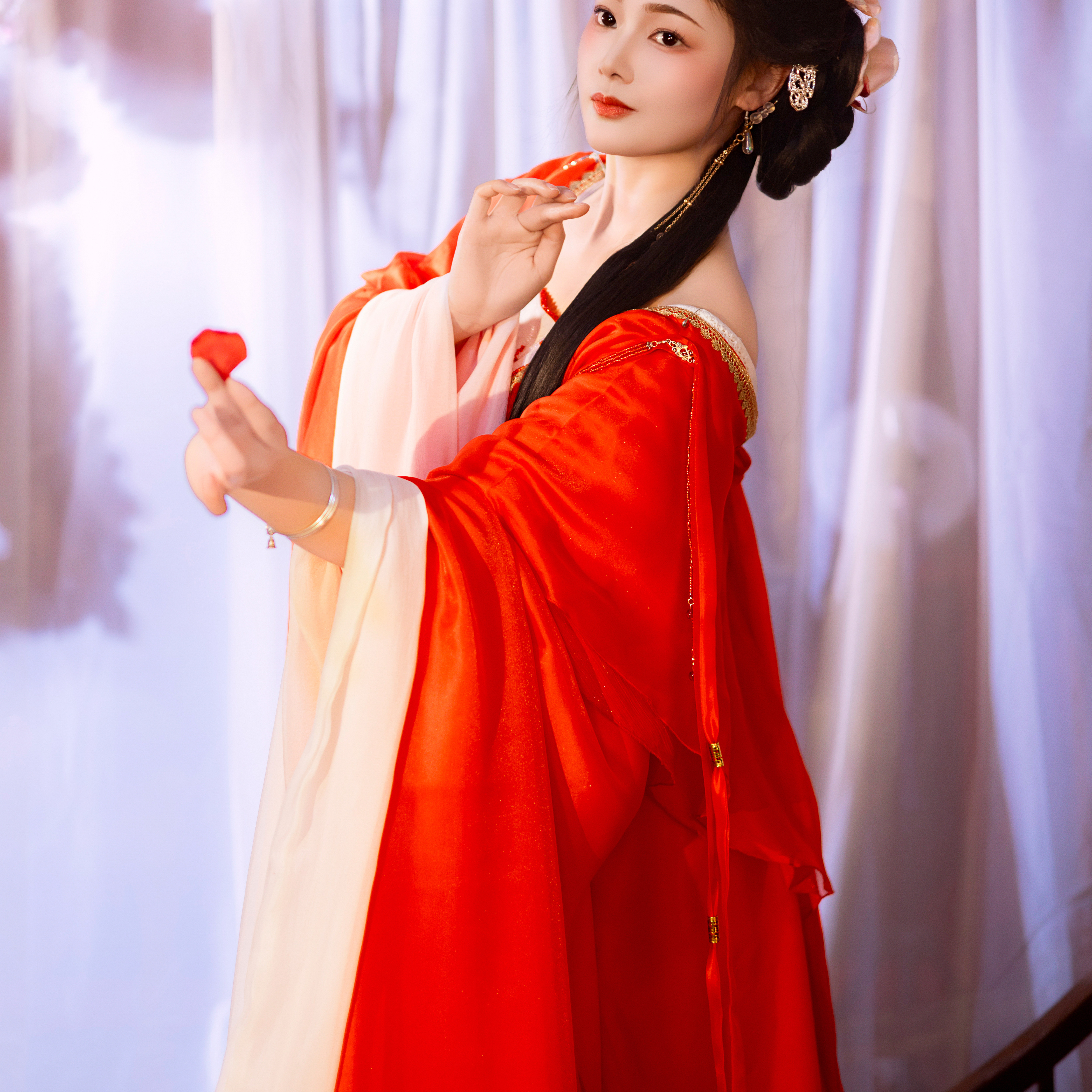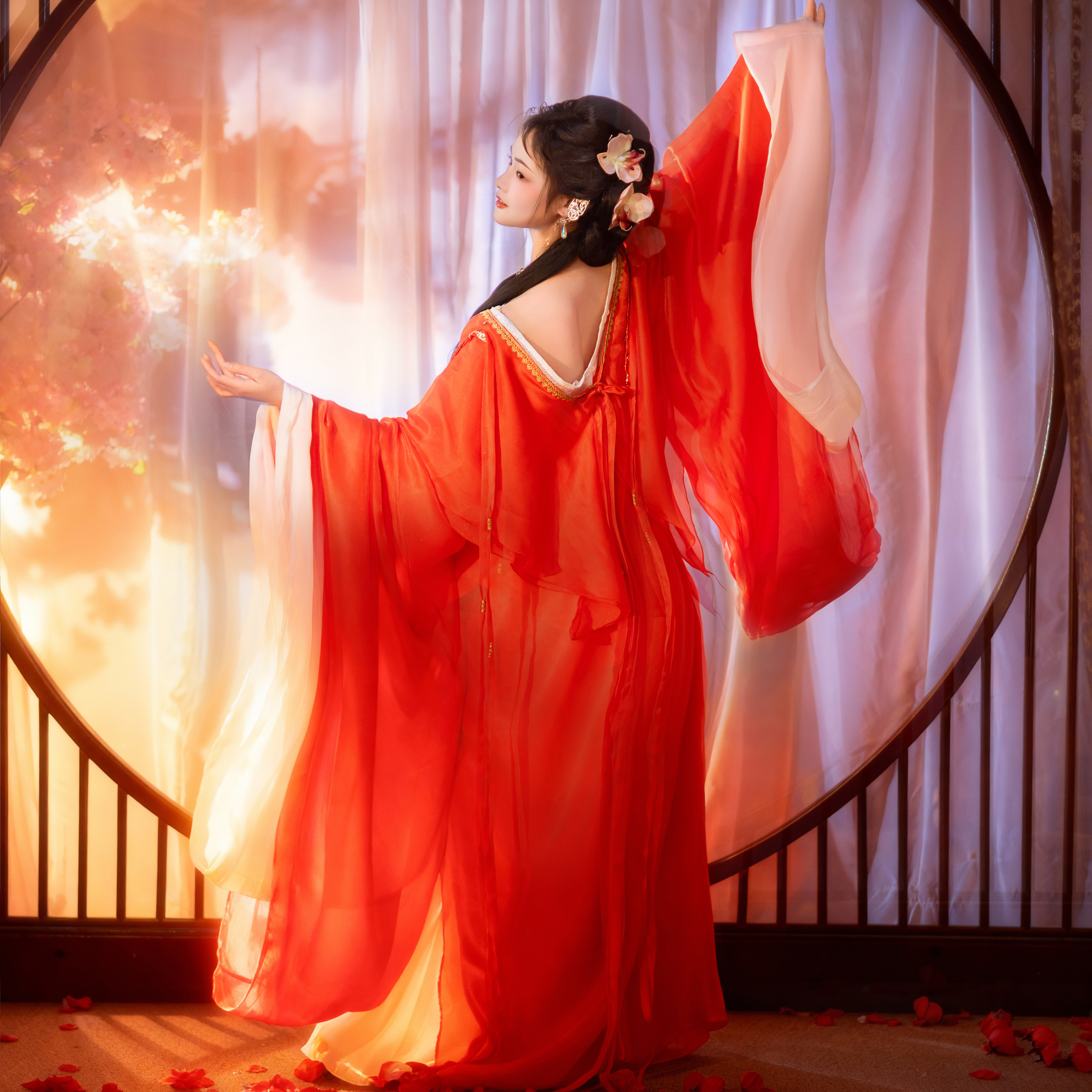 📚 水华绛朱 纯色影视风高级感广袖飘逸连衣裙