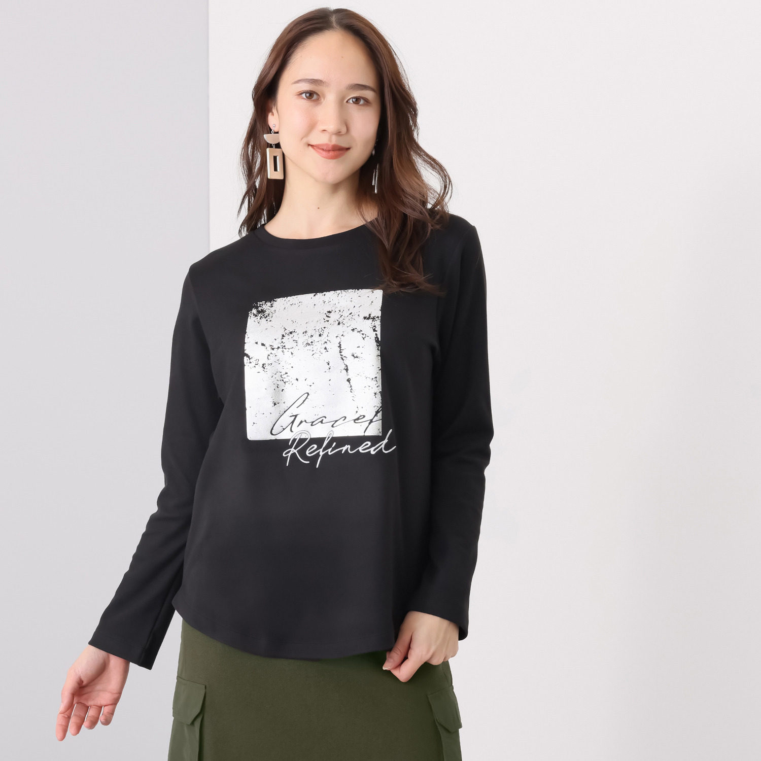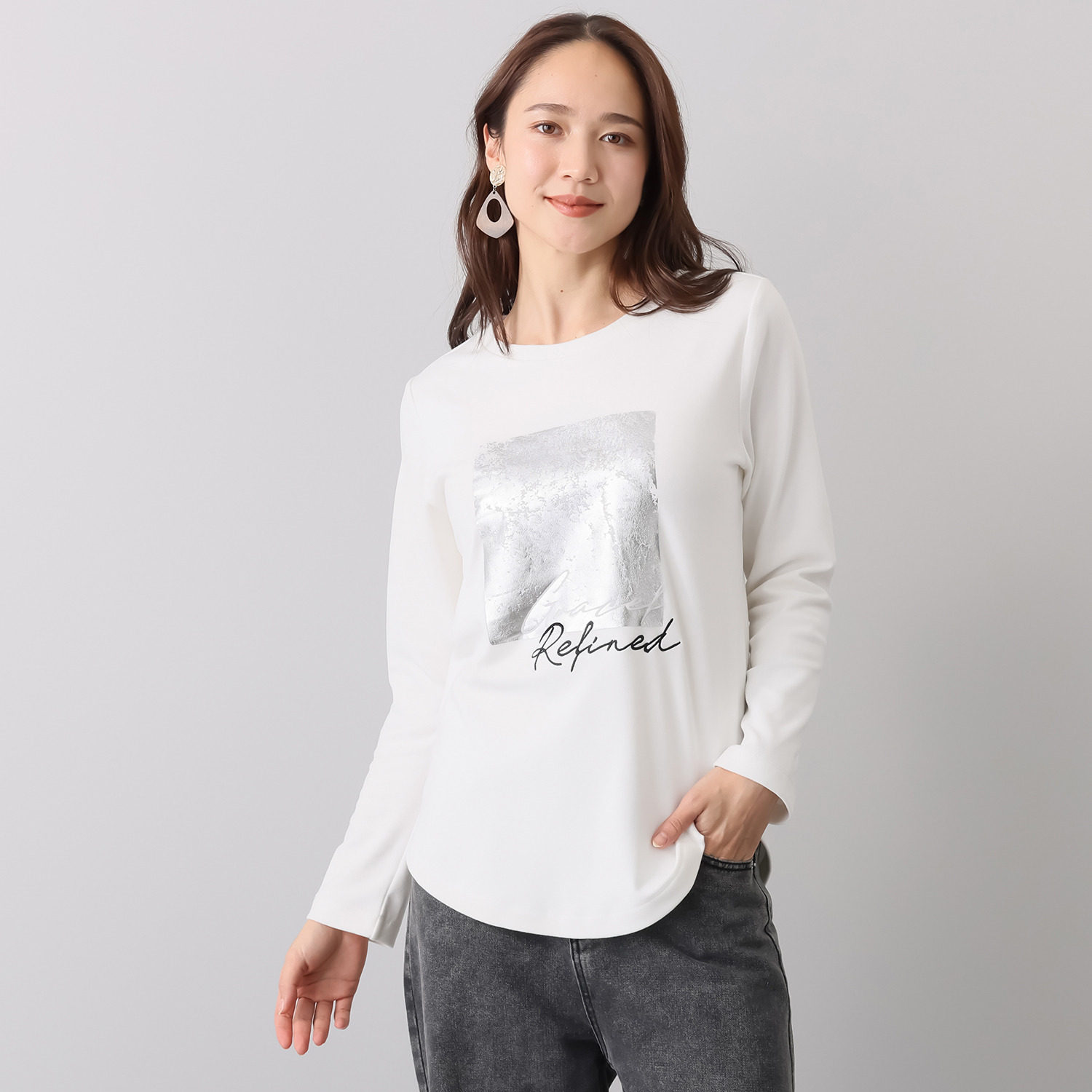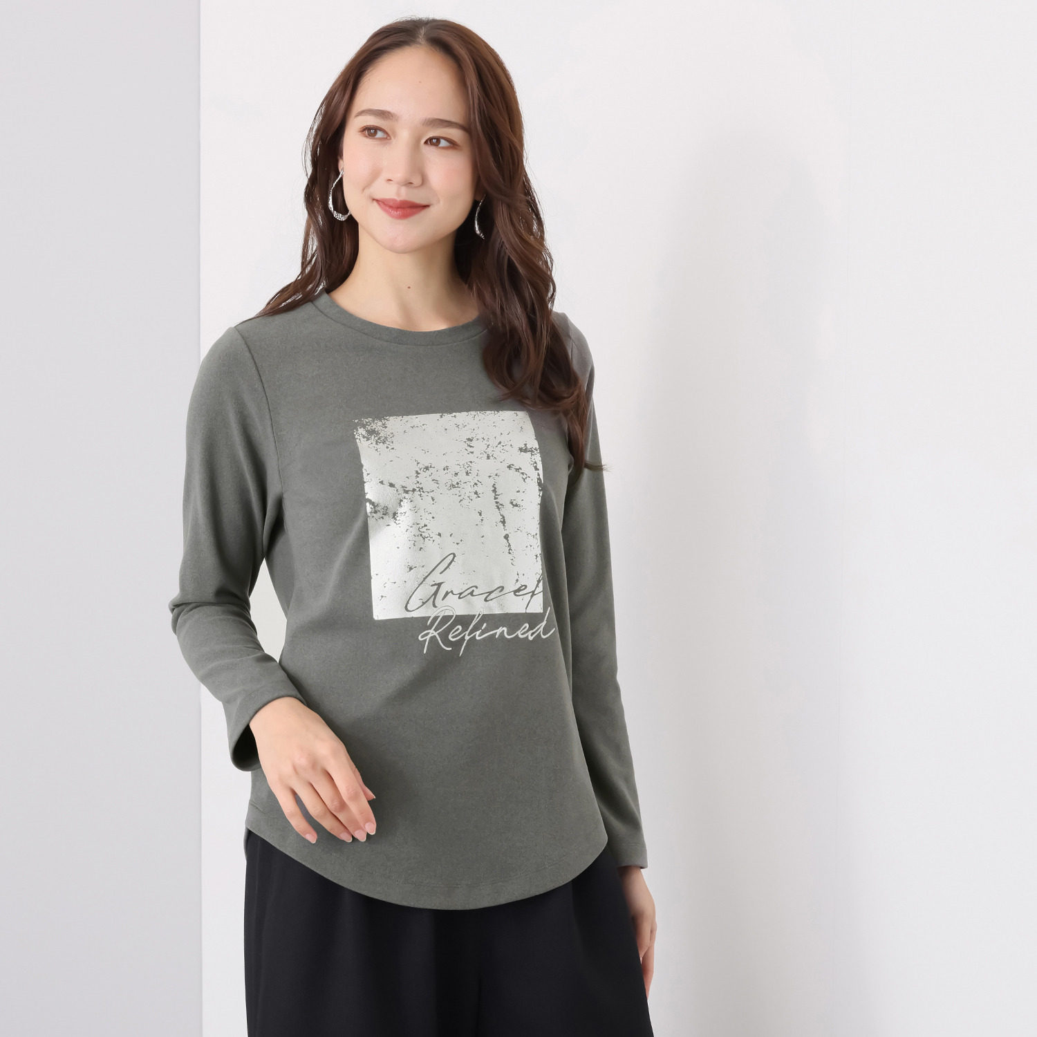 📚 日单秋冬新款柔软亲肤胸前银箔印花双面绒“德绒”打底衫女29909