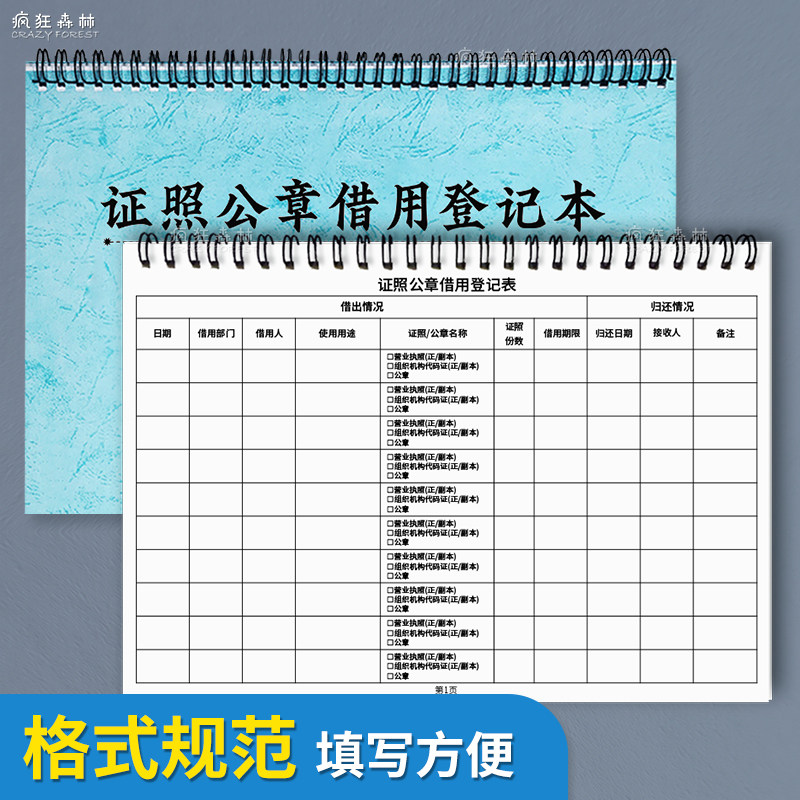 📚 证照公章借用登记本公章使用登记单位部门印章使用借出归还备案记录本公司企业执照证件借用记录本借还记录本