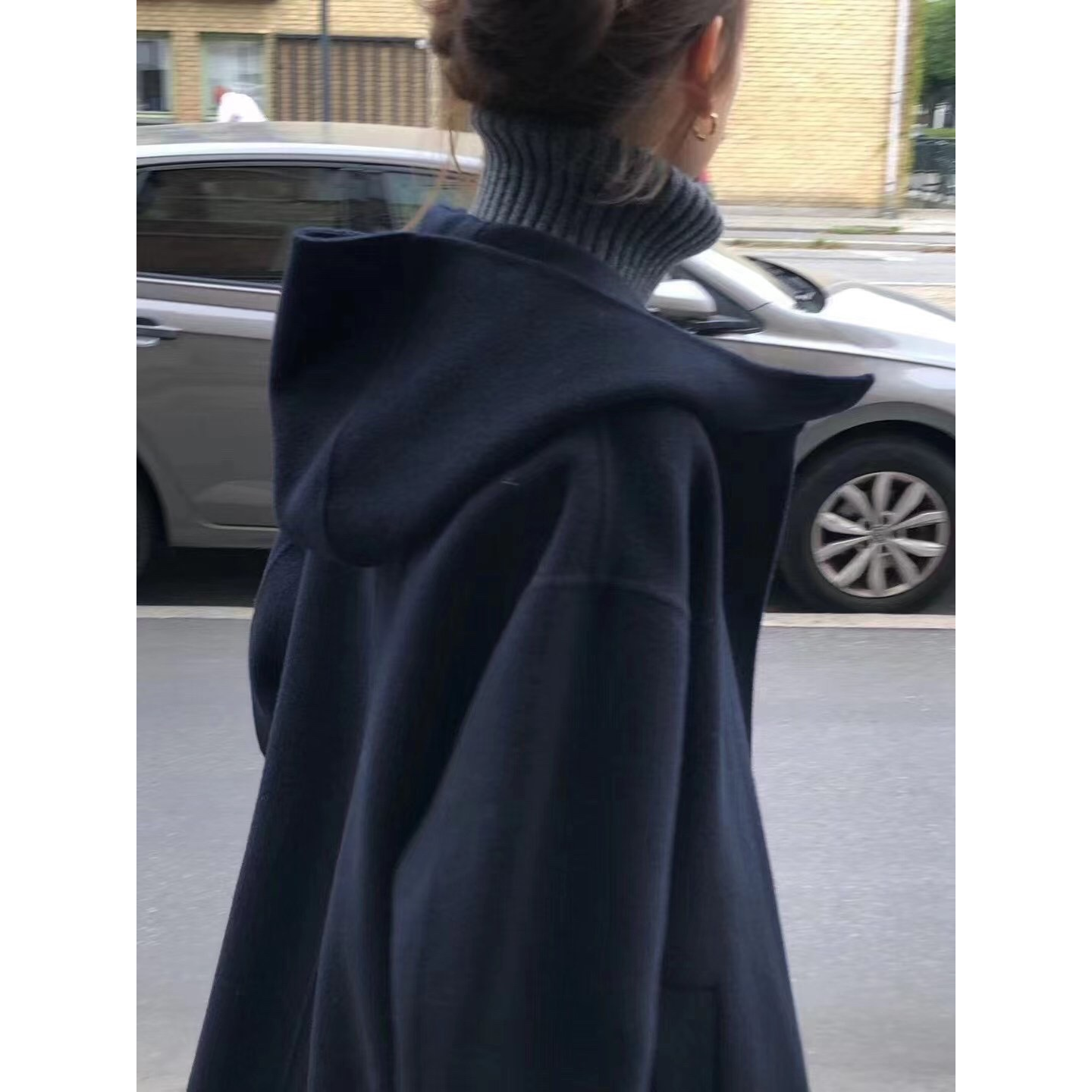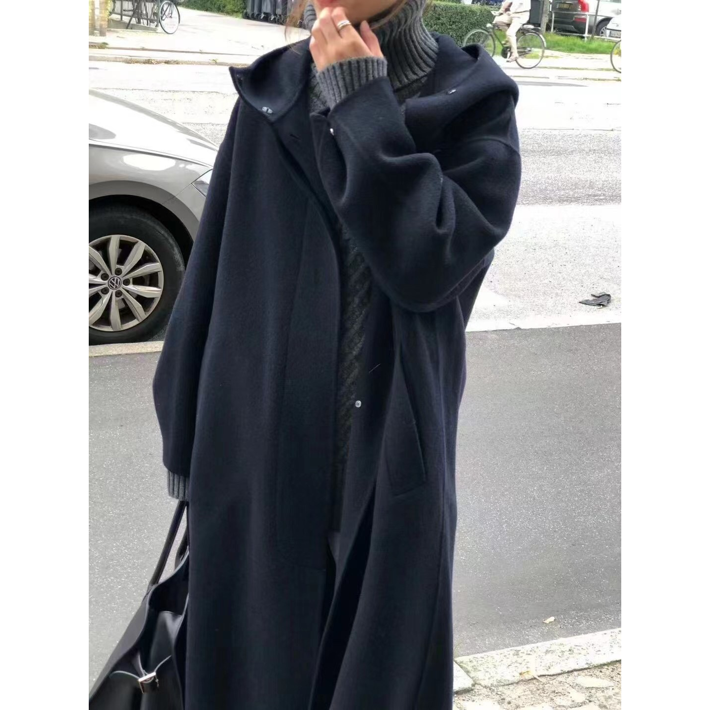 📚 秒发!ounce连帽羊毛大衣韩国设计师25秋冬简约优雅长款呢外套女
