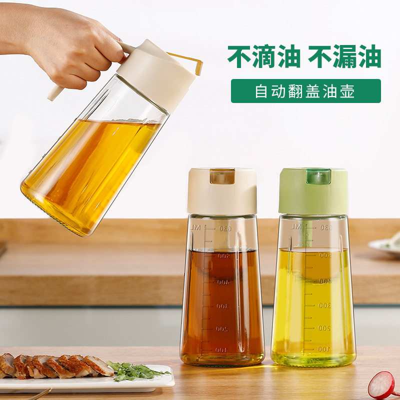 📚 玻璃油壶630ml厨房家用食品级大容量装油容器油罐酱油醋料瓶防漏