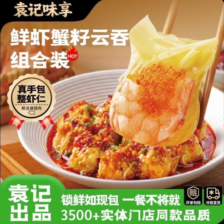 📚 袁记云饺鲜虾蟹籽味享鲜云吞210g*5盒组合装招牌早餐方便手工制作