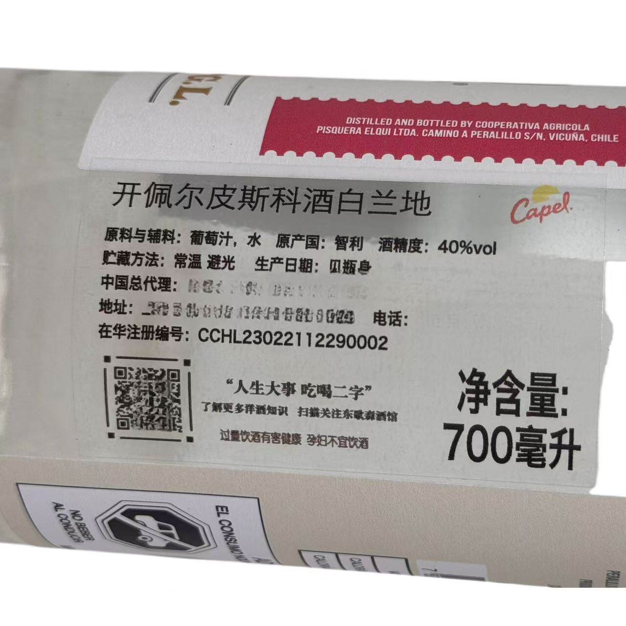 📚 开佩尔皮斯科酒白兰地Capel Reservado Pisco700ml 40度 国行正品