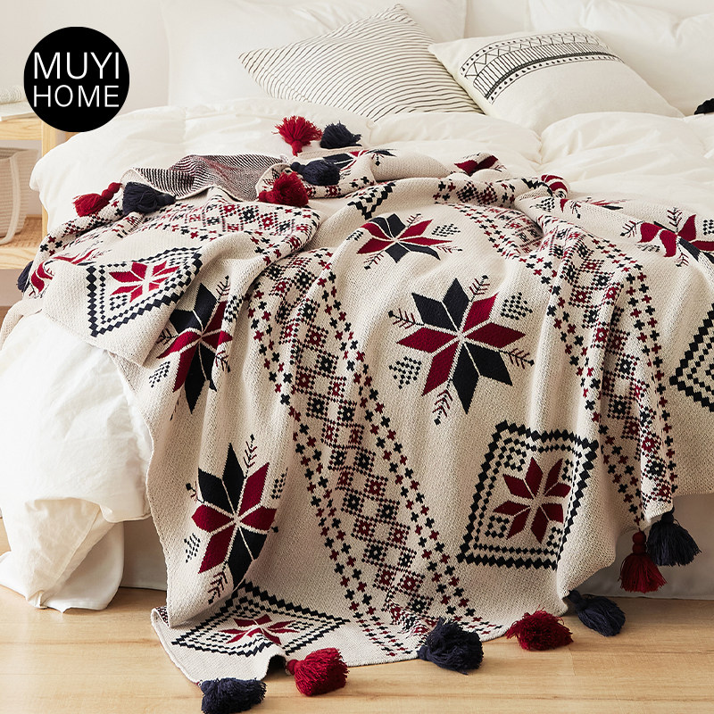 📚 MUYI HOME波西米亚风纯棉毛毯客厅沙发毯盖毯全棉毯子民宿床上用