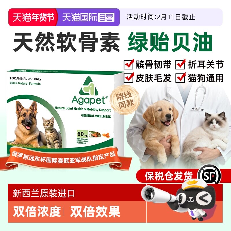 📚 【自营】新西兰贝它安Agapet绿贻贝油折耳猫狗软骨素关节髌骨替诺