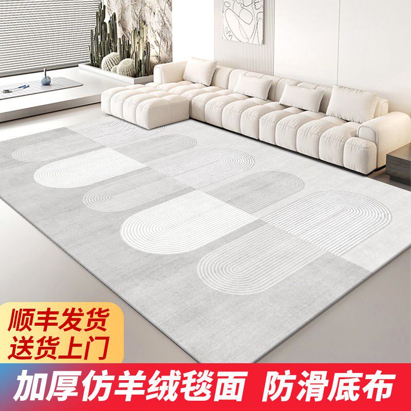 📚 奶油客厅加厚地毯直o播间地垫简约黑白灰免洗卧室床边毯子可擦防