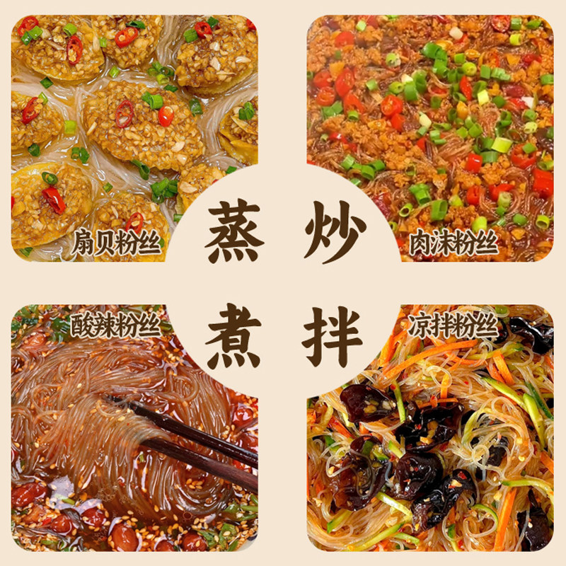 📚 山东龙口风味粉丝白扇贝蒜蓉生蚝凉拌豌豆龙须干米粉商用丝粉