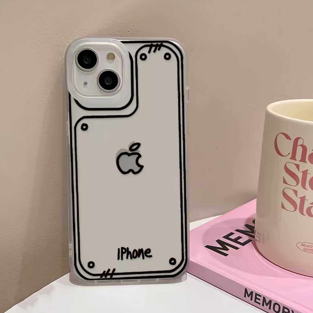 📚 线条苹果图标苹果17ProMax磨砂透明手机壳13/14plus华为15/16Pro荣耀7/8小米小米11/12p不撞款x/xs防摔保护套