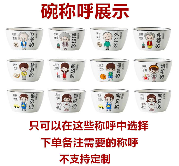 📚 一人一碗一筷一勺亲子分餐家庭碗筷勺专人专用一家六口卡通陶瓷碗