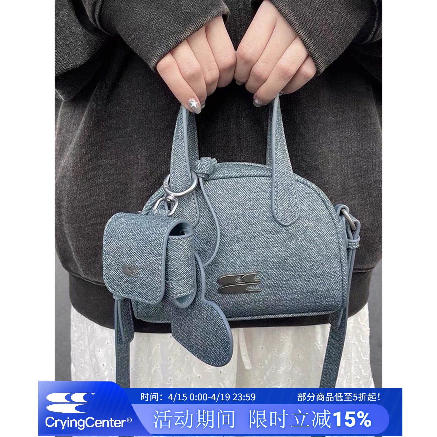 📚 CryingCenter 复古仿牛仔mini波士顿包 大学生斜挎包配耳机包