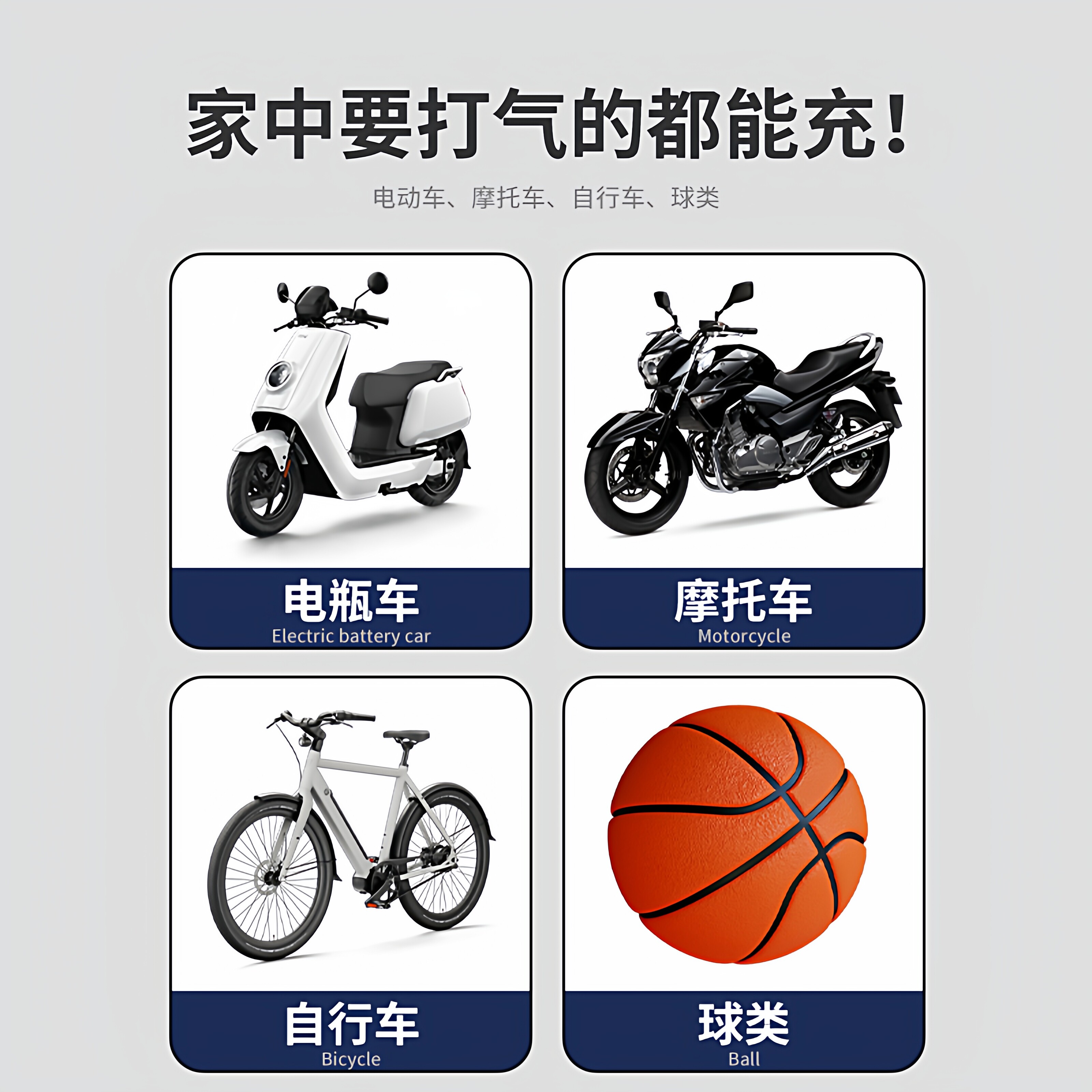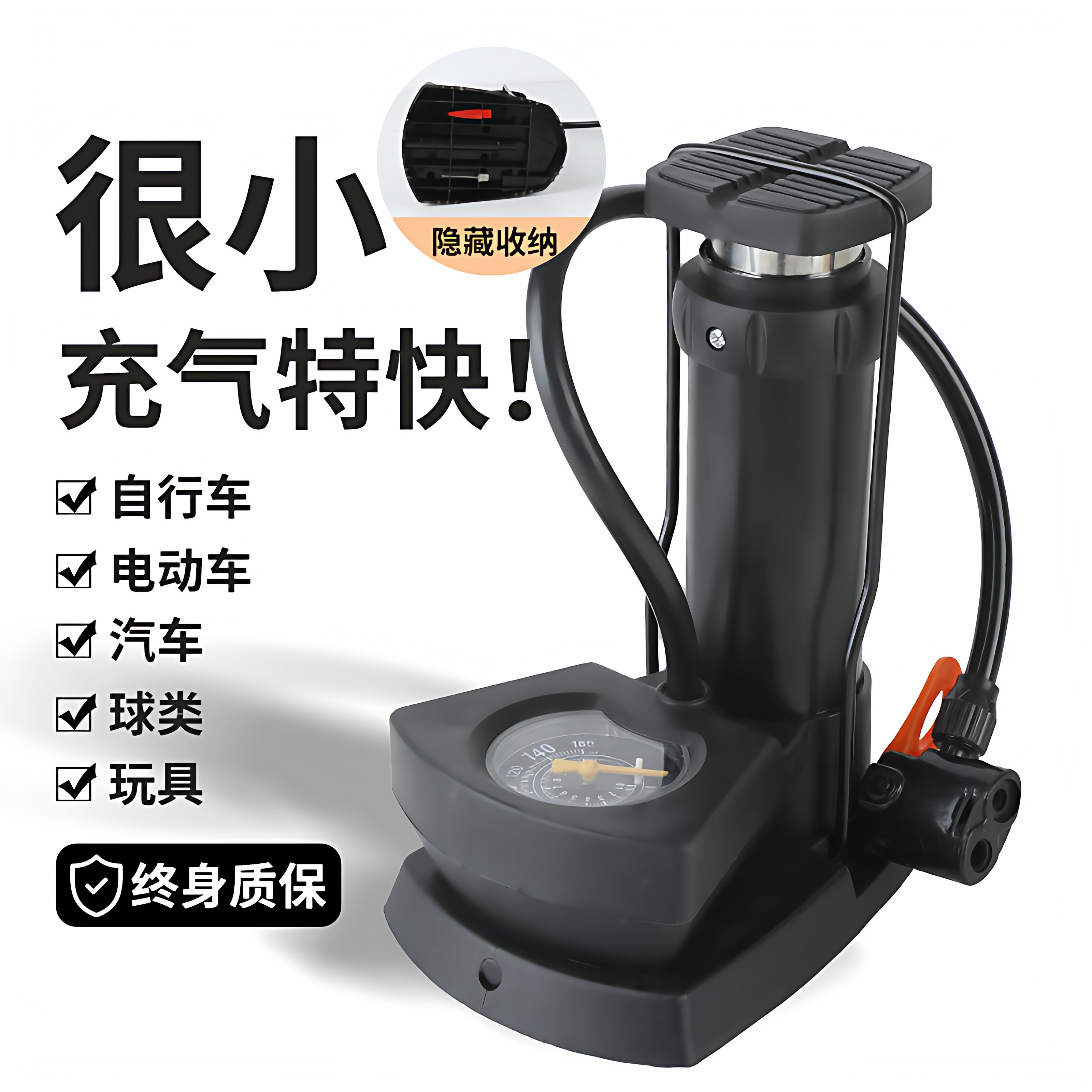 📚 脚踩打气筒自行车家用通用高压充气泵电动电瓶摩托车气管篮球便携