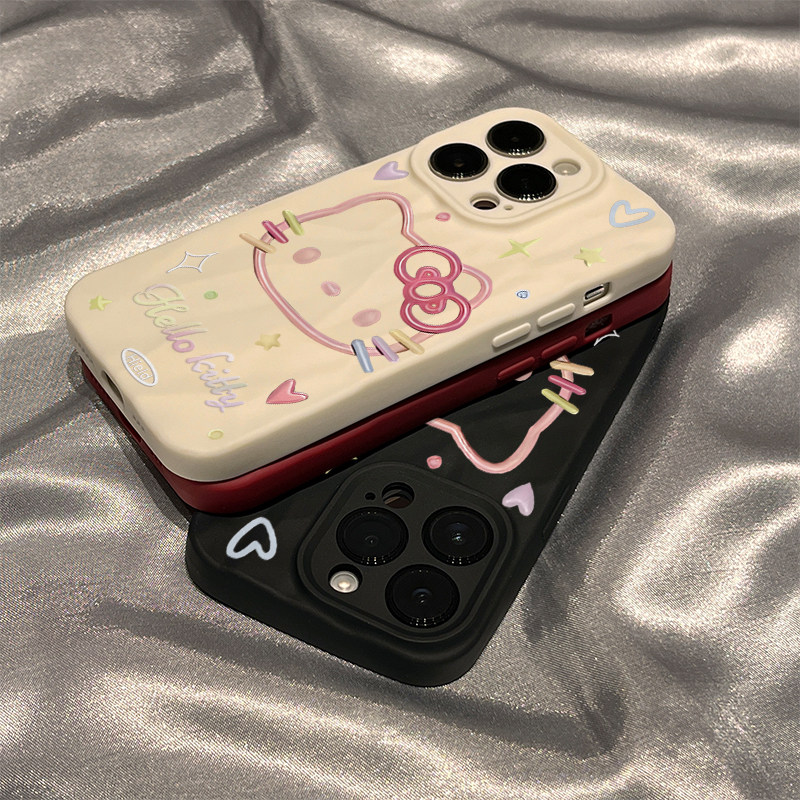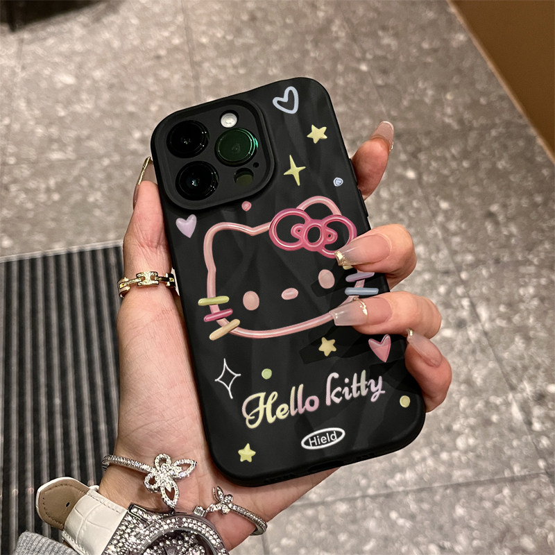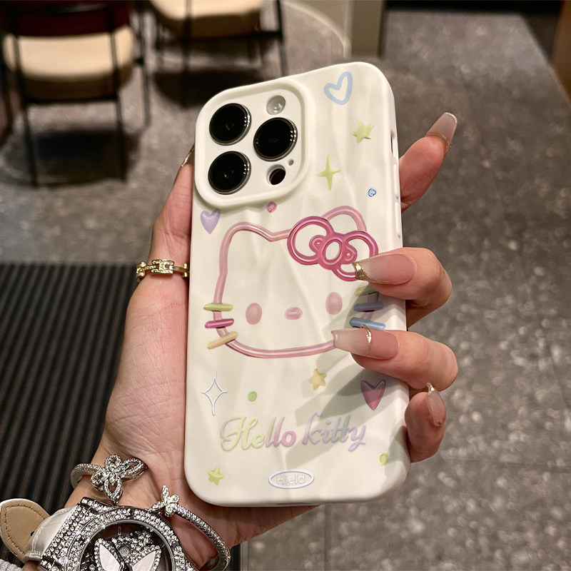 📚 彩色KT猫适用苹果17promax手机壳卡通iPhone16Pro可爱15Plus少女心14Pro新款折皱壳13女款全包xsmax创意x/xs