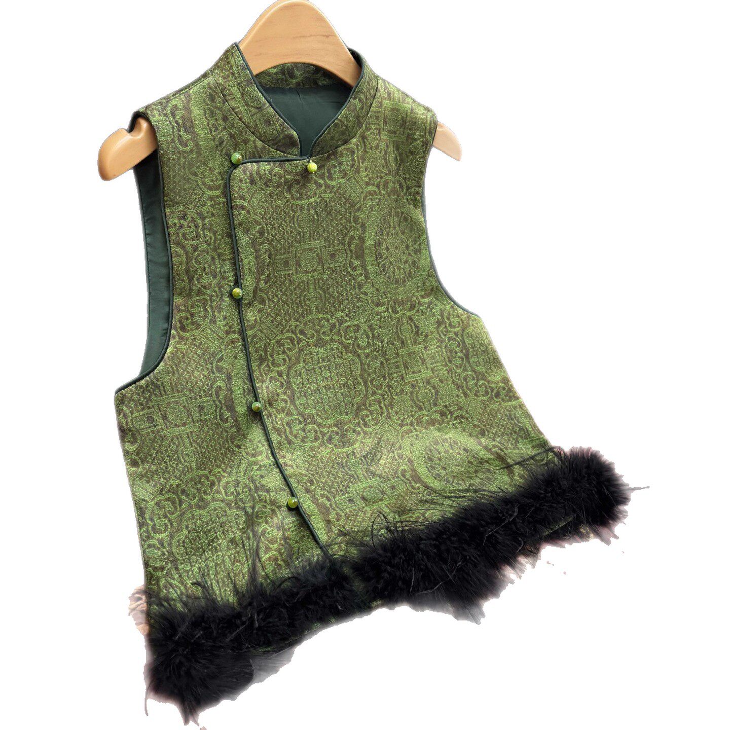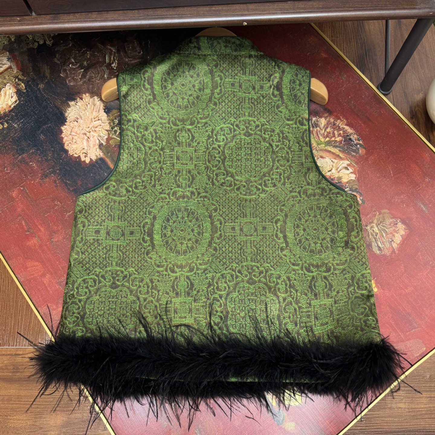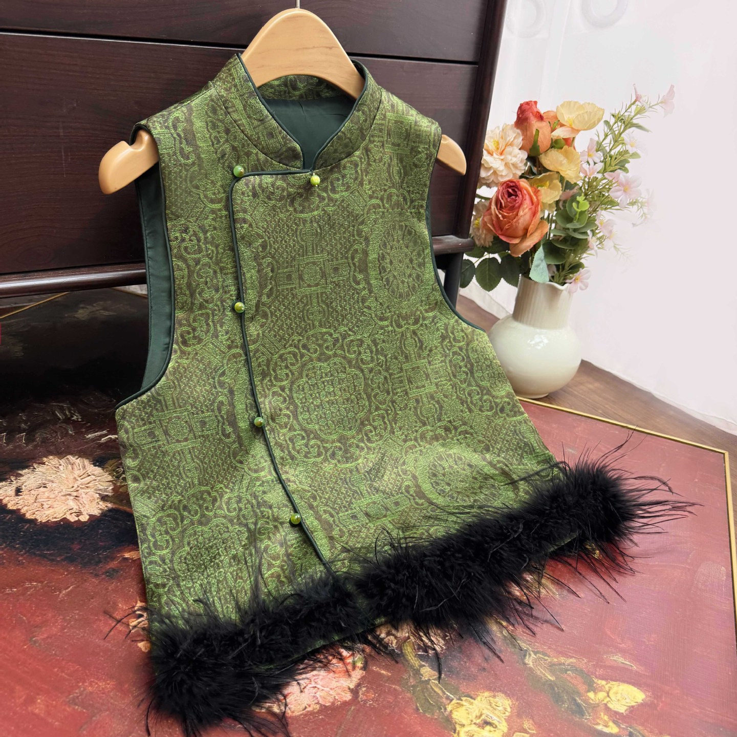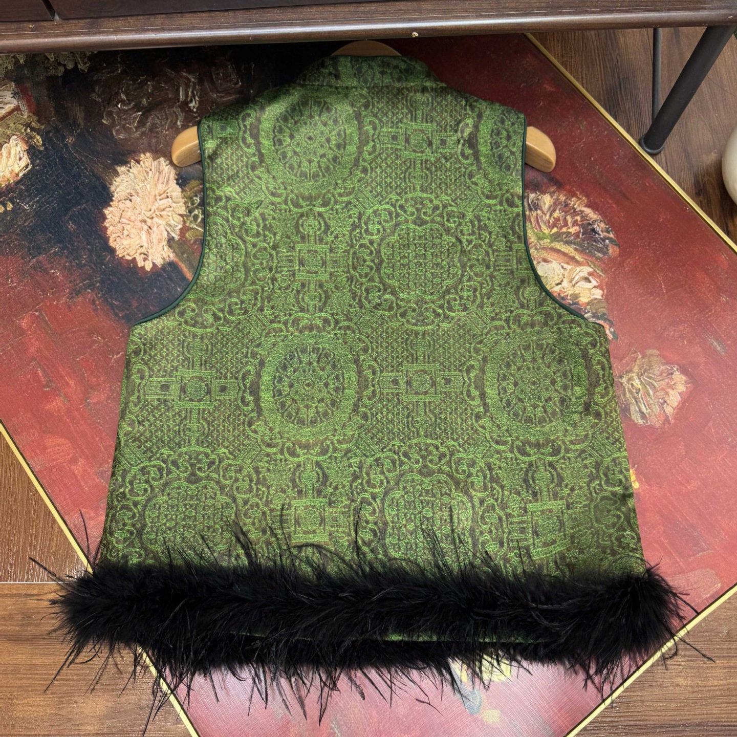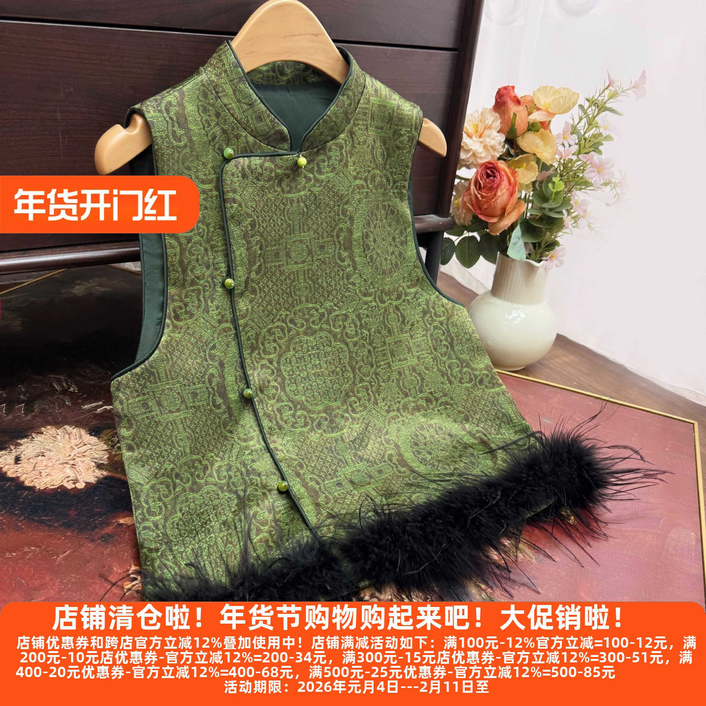 📚 D丽新折扣 新中式国风提花马甲圆领茸毛可拆卸减龄坎肩叠穿马夹