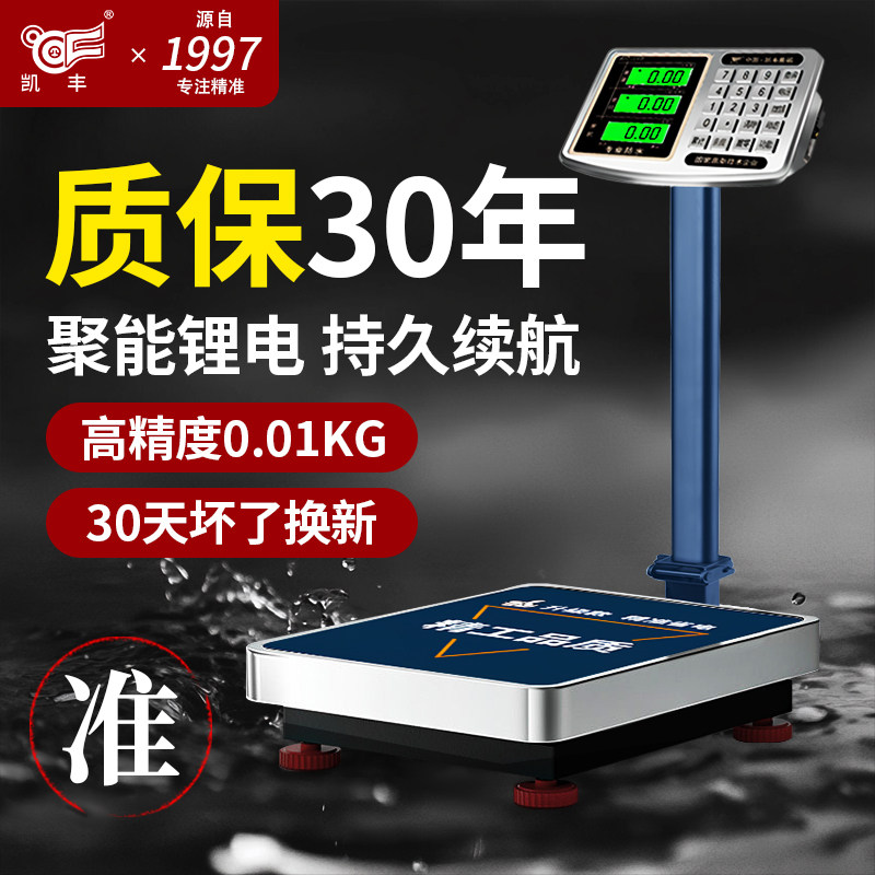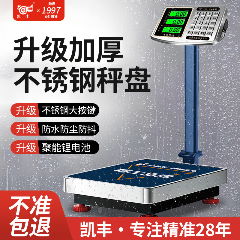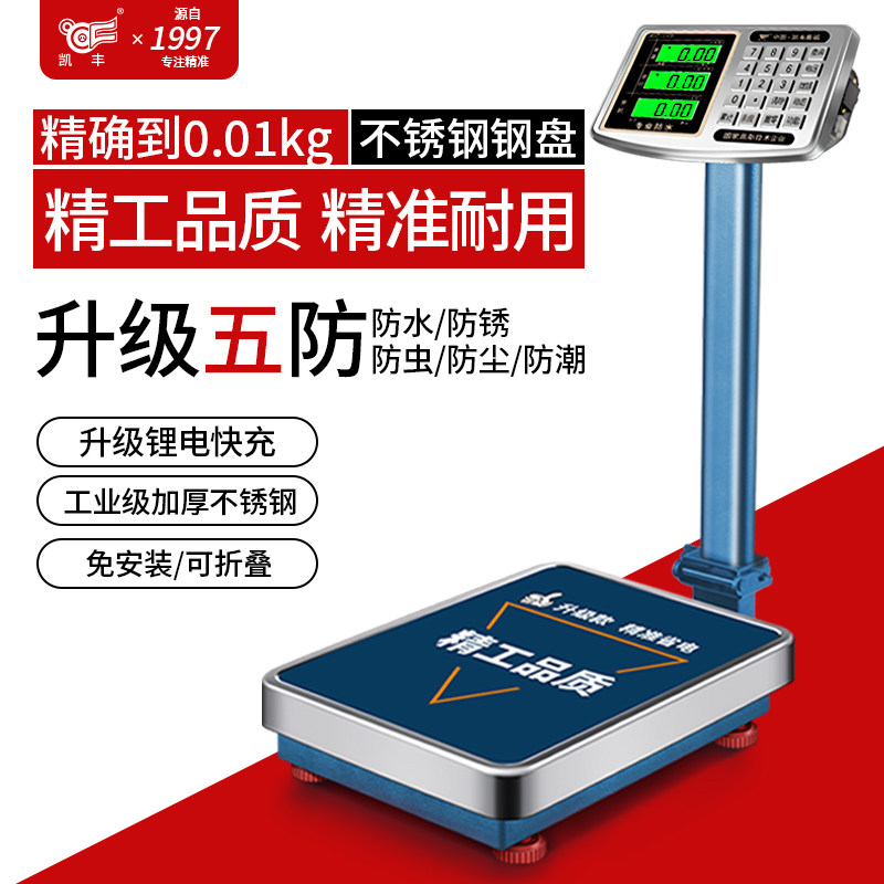 📚 凯丰电子秤做生意商用加厚款不锈钢秤盘300kg折叠台秤磅秤称重