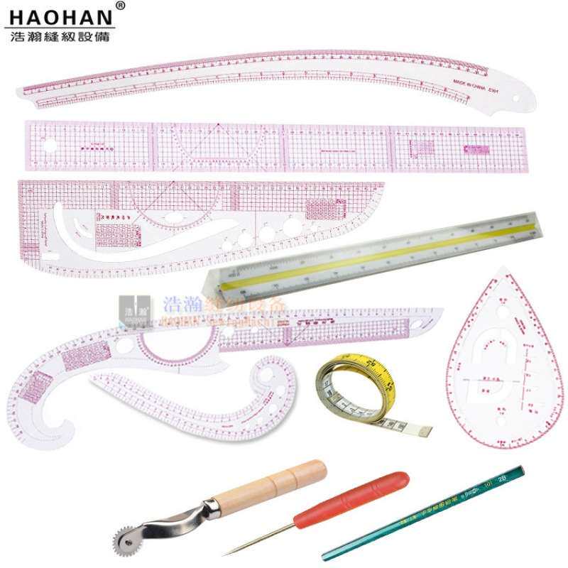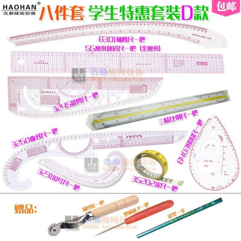 📚 缝纫服装尺8件套学生实惠D款三棱比例尺服装放码裁剪尺袖臂曲线尺