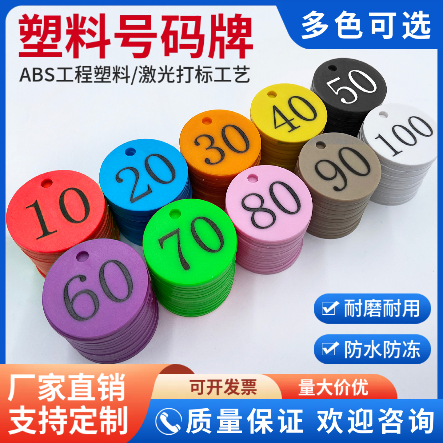 📚 数字号码牌食品厂树木牛羊编号桑拿搓澡麻辣烫寄存防水钥匙牌定制