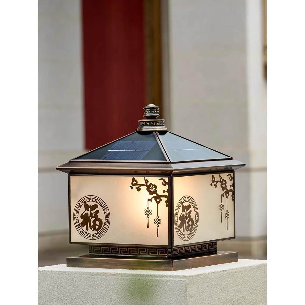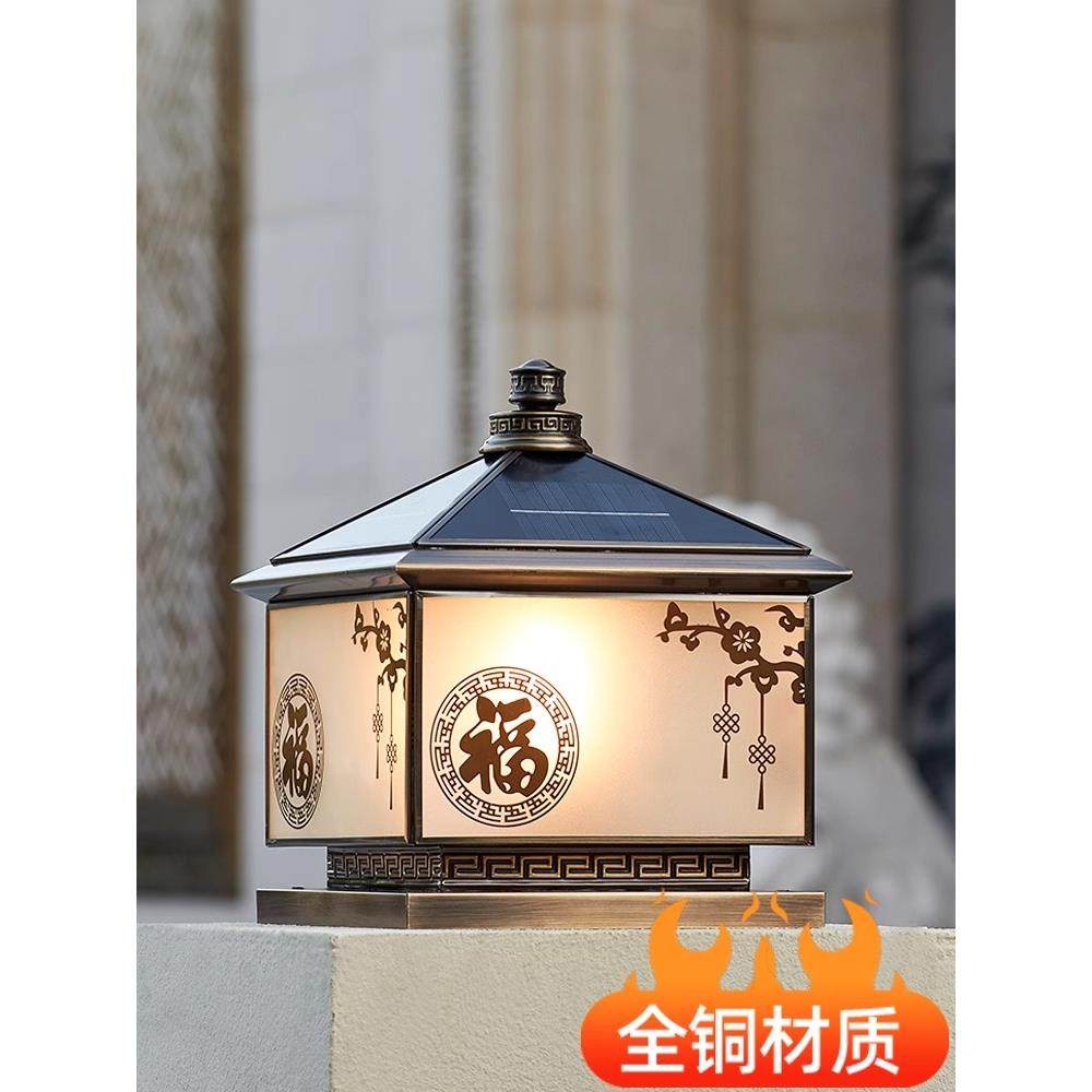 📚 全铜太阳能柱子灯户外防水围墙灯别墅花园大门柱灯室外防水柱头灯