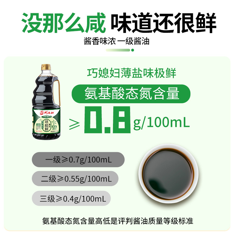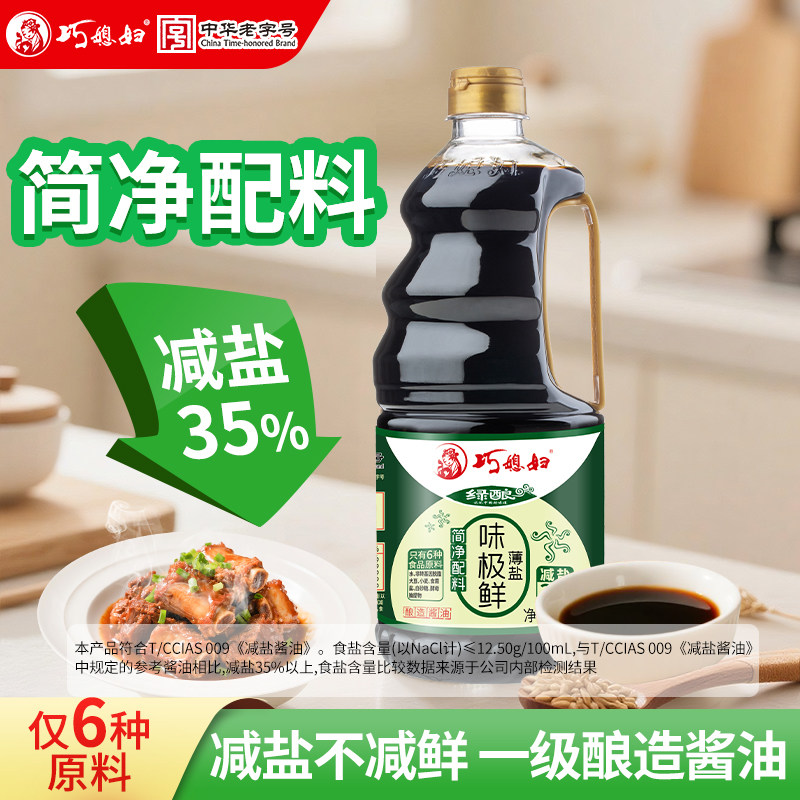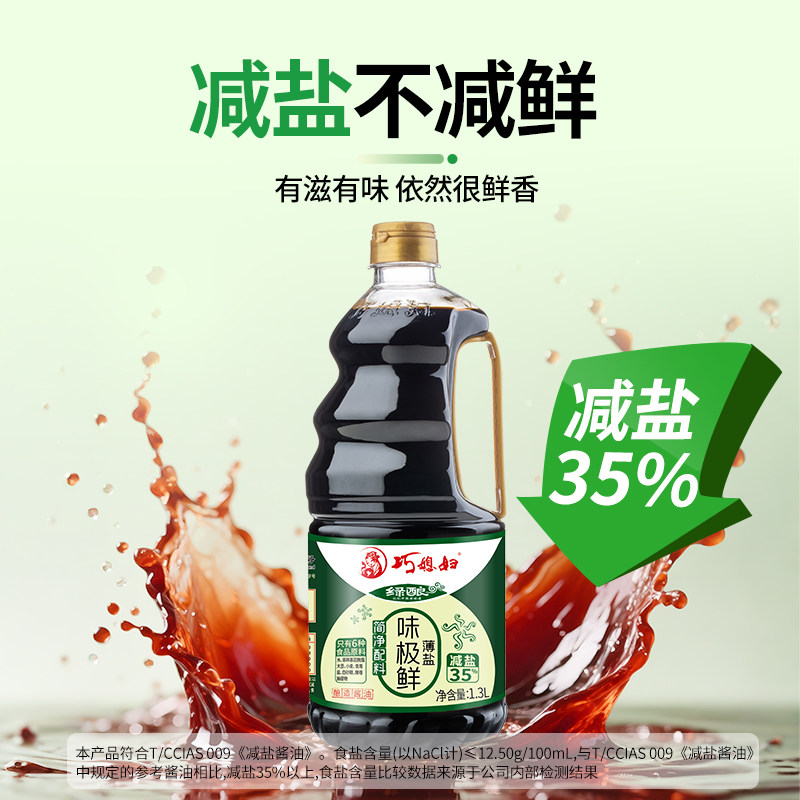 📚 巧媳妇减盐味极鲜生抽酱油1.3L大瓶减盐不减鲜味家用酿造父母健康