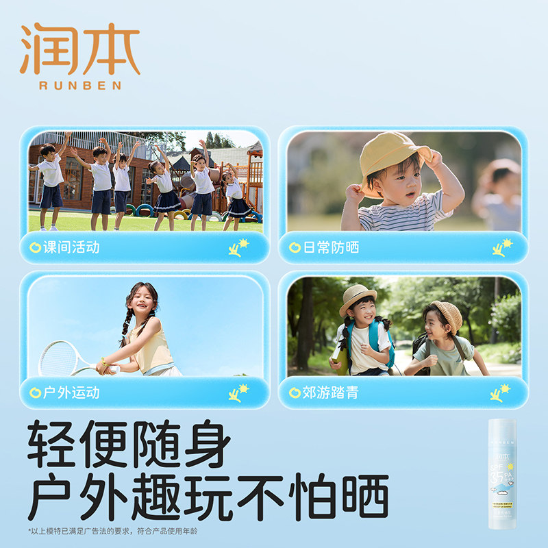 📚 润本儿童防晒霜夏季即涂防晒乳学生专用防晒户外隔紫外线防汗防晒