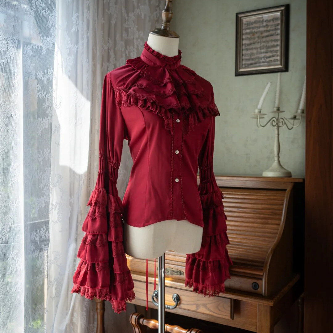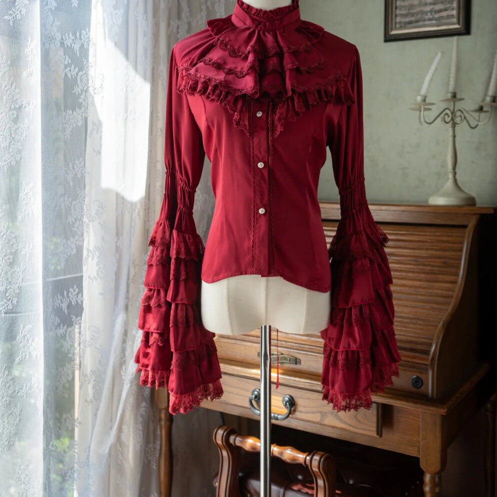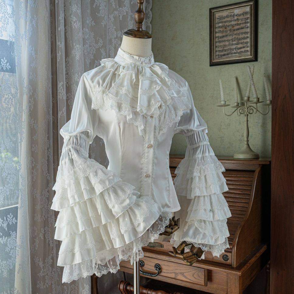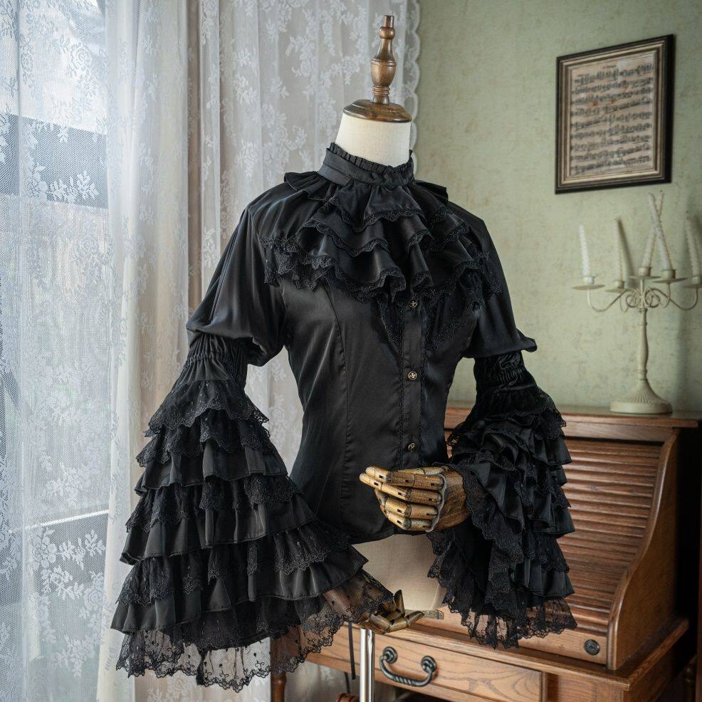 📚 哥特Lolita姬袖衬衫内搭基佬白色黑王子装现货朋克上衣洛丽塔内搭