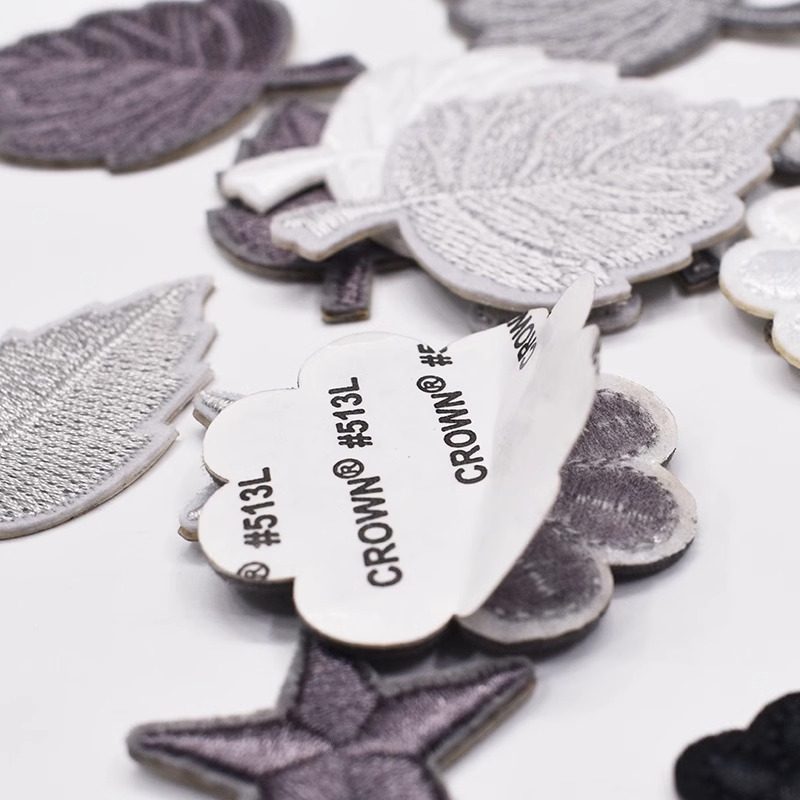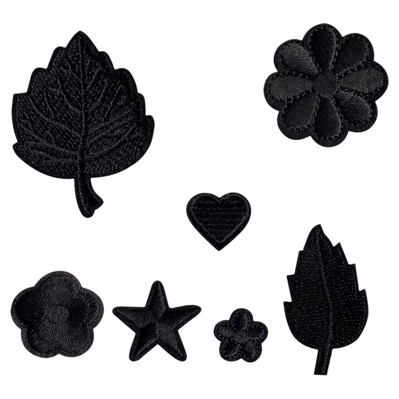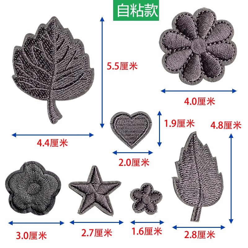 📚 深浅灰黑色补丁贴自粘羽绒服贴免缝花朵小号刺绣衣服破洞装饰布贴