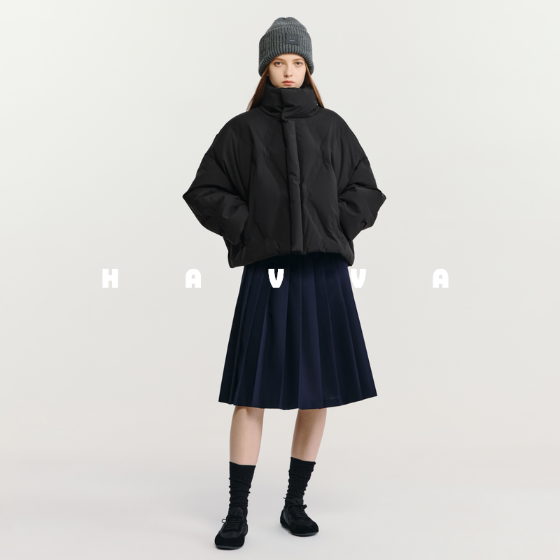 📚 HAVVA高蓬松度保暖高领羽绒服短款女士开衫上衣2025冬季Y3-2501