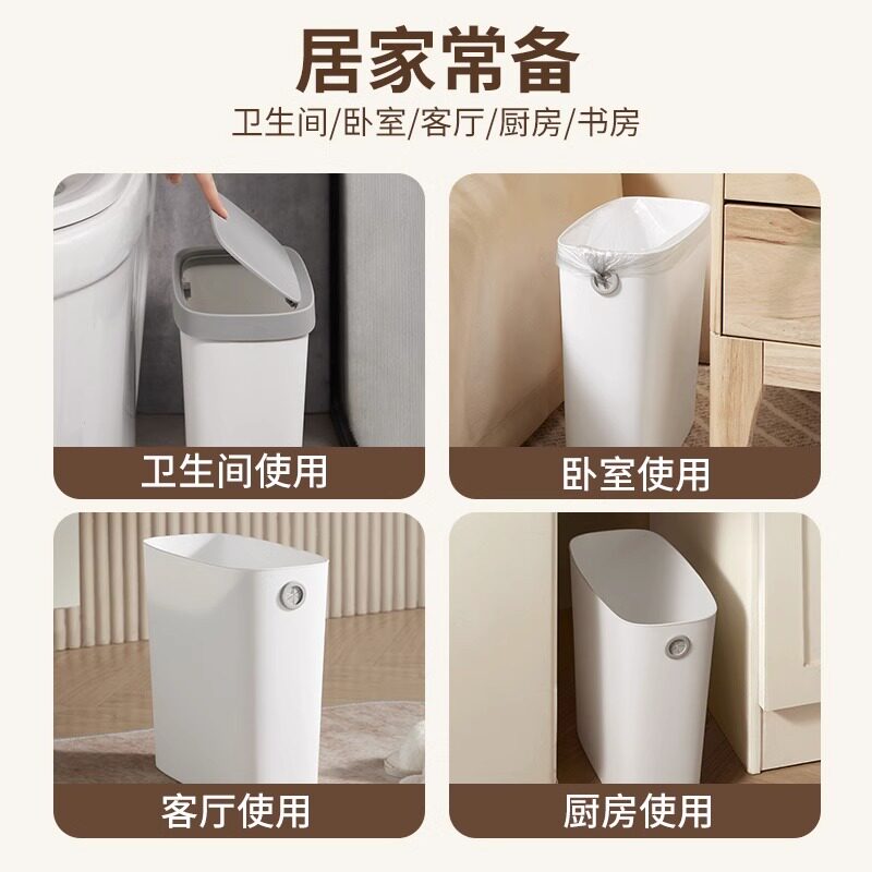 📚 垃圾桶家用卫生间厕所专用夹缝窄小卫生桶大容量客厅卧室无盖纸篓