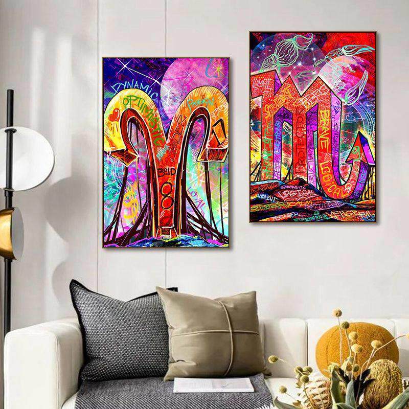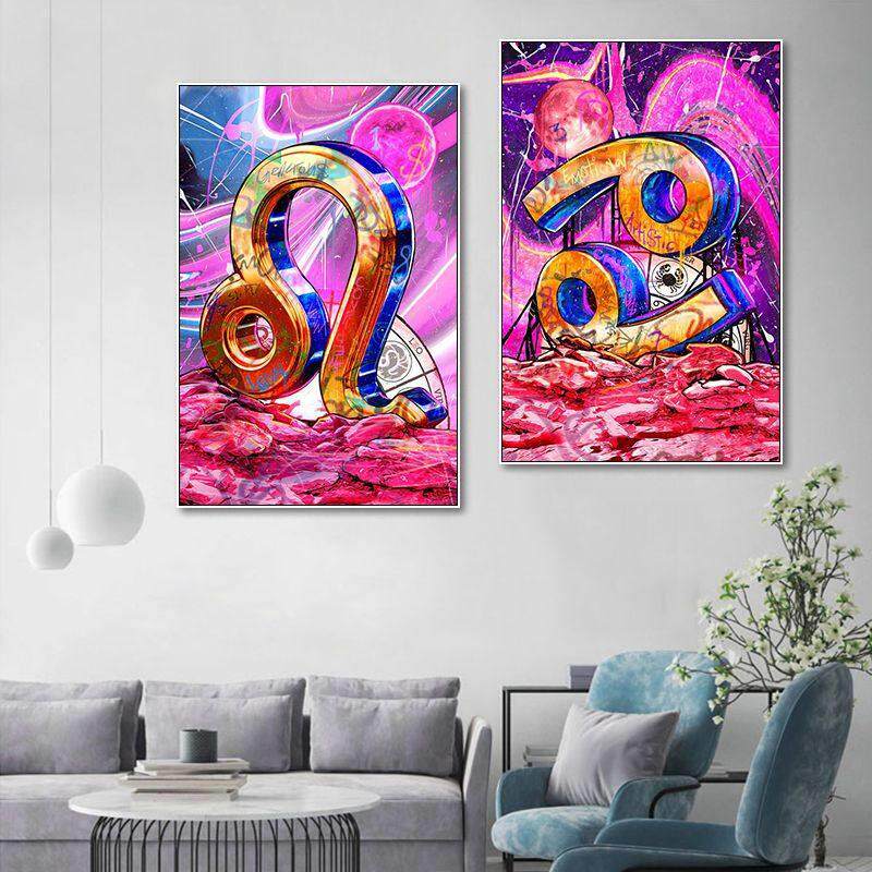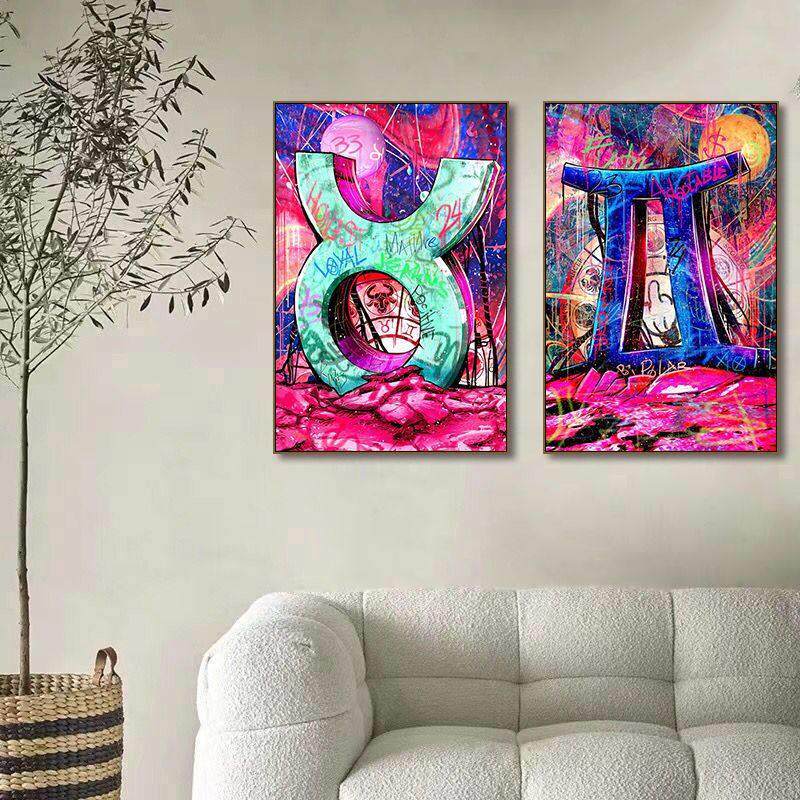 📚 新波普风十二星座挂画涂鸦艺术客厅卧室装饰画工作室潮流墙面挂画
