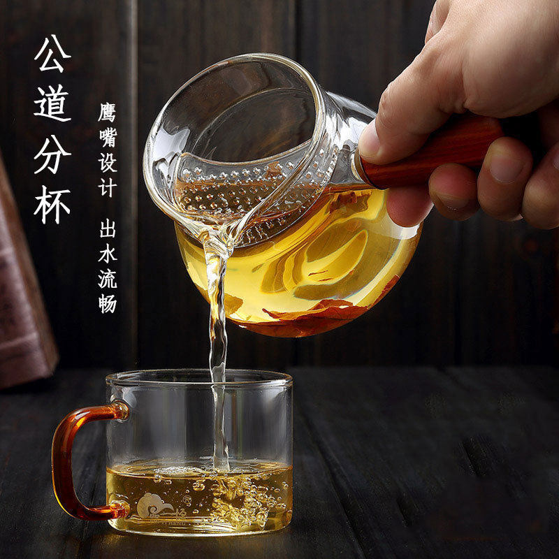 📚 日式耐热玻璃侧把公道杯过滤分茶器功夫茶具茶海大容量手把锤纹壶