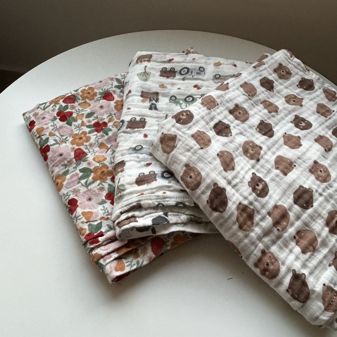 📚 纯棉纱布muslin双层薄款纱布襁褓巾包被夏季宝宝浴巾透气