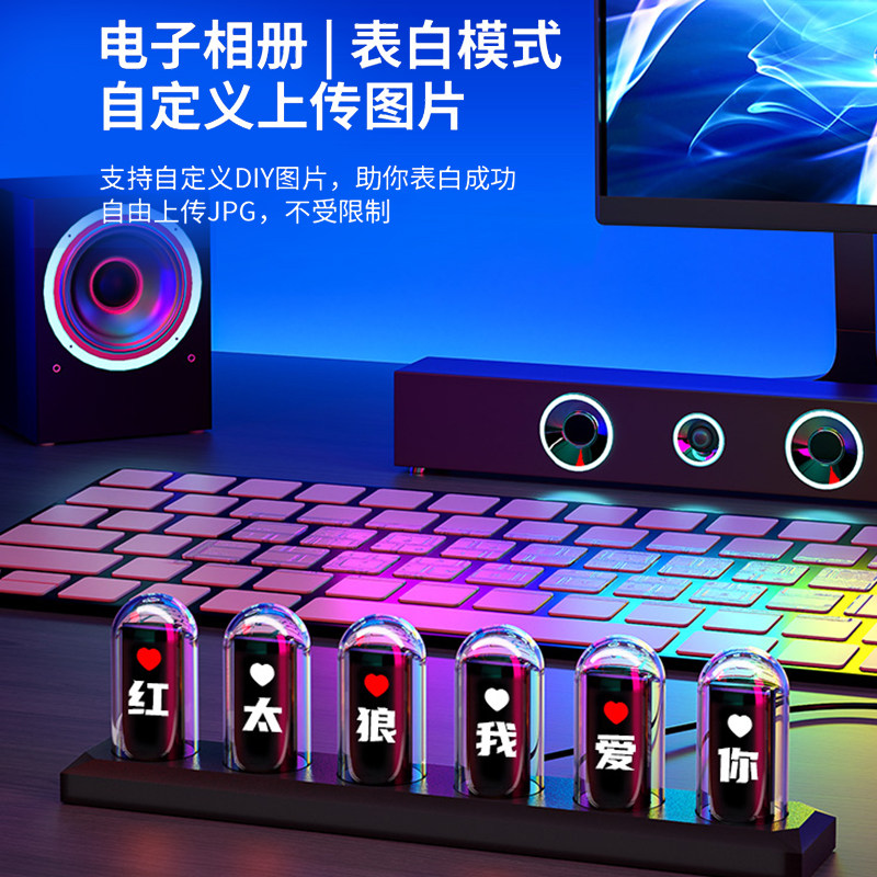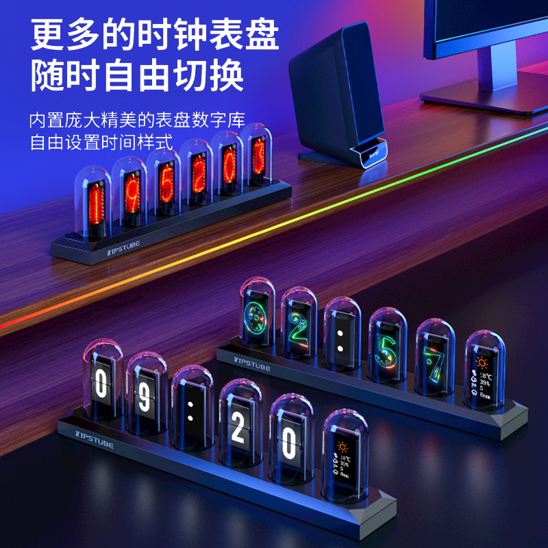 📚 IPS辉光管时钟电竞房RGB赛博朋克命运石之门桌面摆件科技感送男生