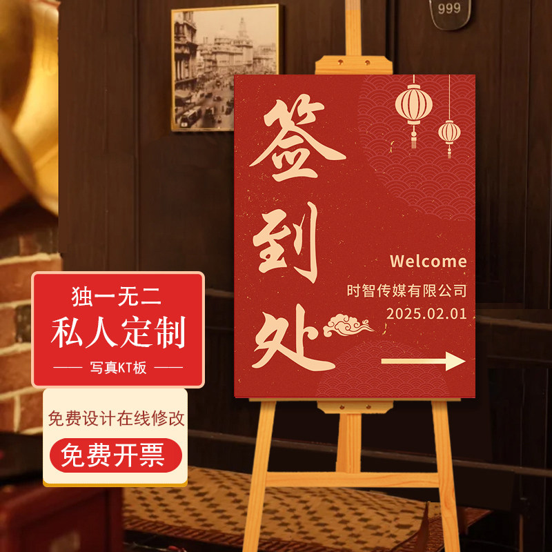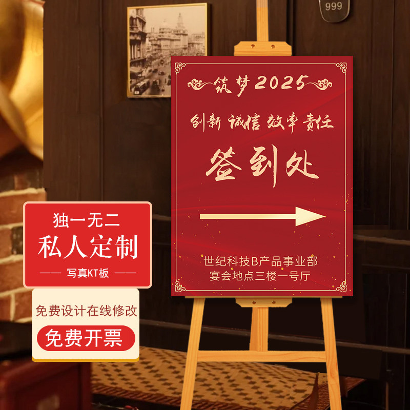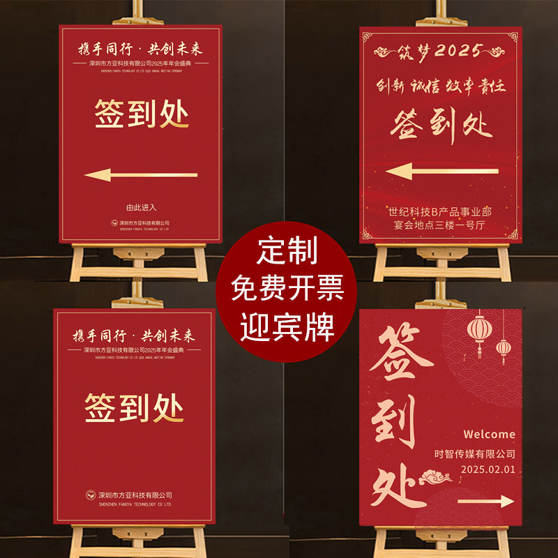 📚 定制2026马年公司年会迎宾牌签到处入场指示牌指引牌kt板场景布置