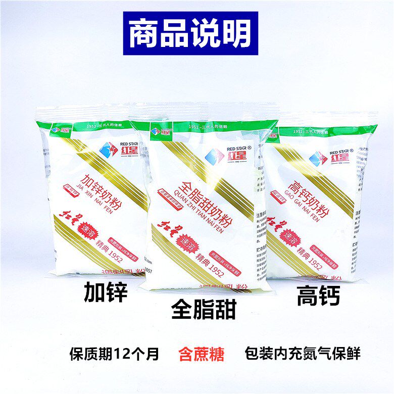 📚 【包邮】黑龙江全脂甜加锌高钙红星奶粉350g速溶充氮包装童年味