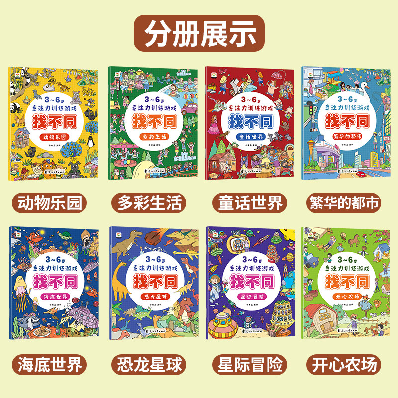 📚 全套8册 儿童专注力思维训练书趣味找不同注意力训练3-6岁儿童找茬游戏书籍数学思维逻辑观察力图书幼儿园睡前益智启蒙绘本书籍