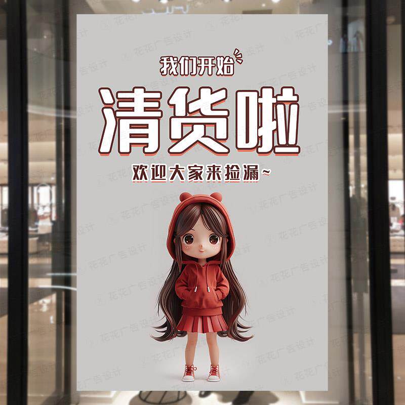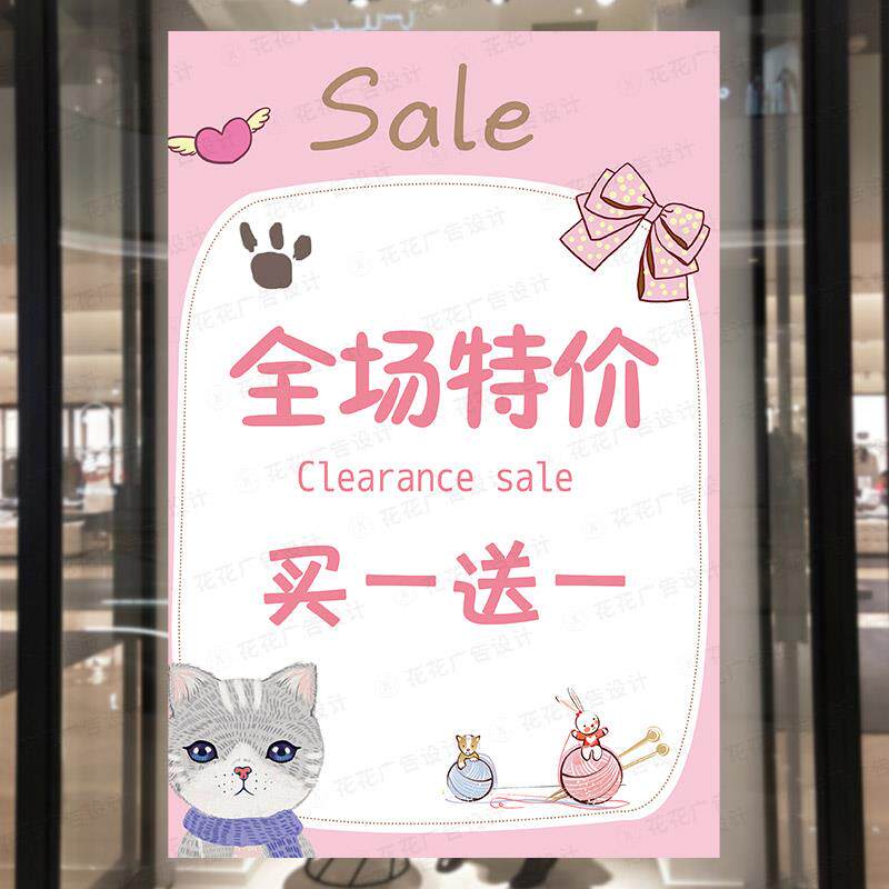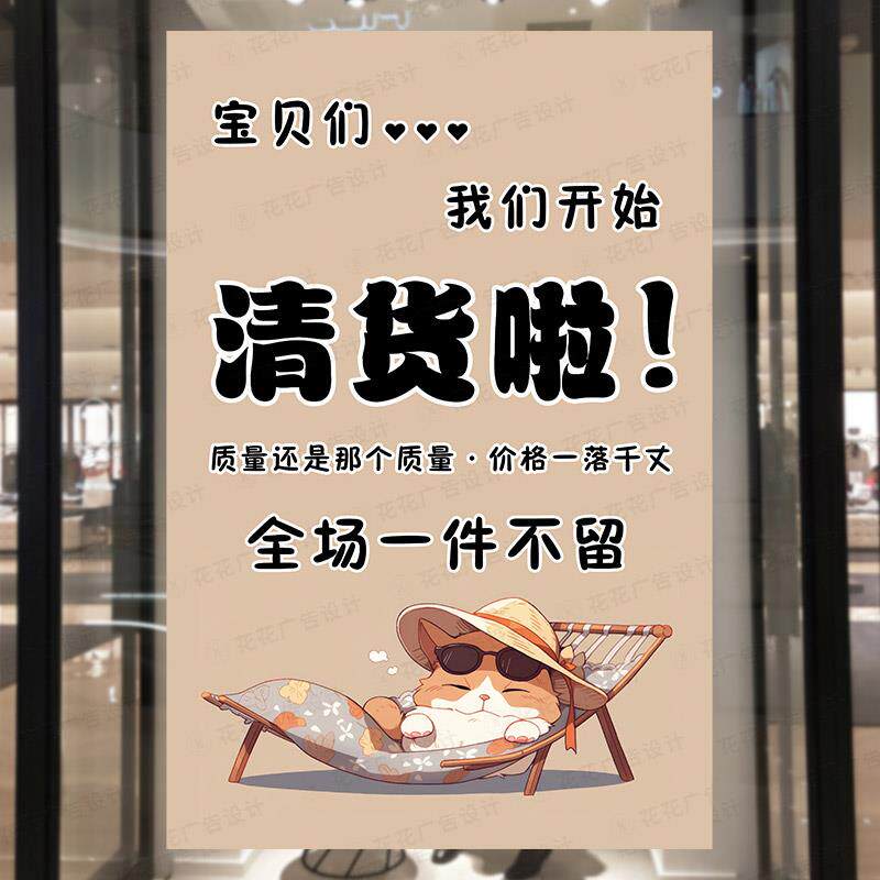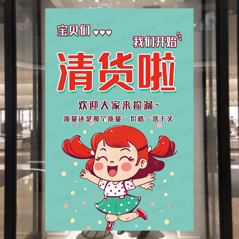 📚 全场清仓活动海报墙贴童装店换季特价促销夏季清货大甩卖广告贴纸